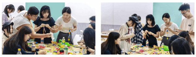 在欢乐温馨的自由交流时间里,“创意手作”环节成为一大亮点。成员们围坐一起,用绳子将字母、数字、爱心、小球等材料巧妙串联,制作出独具特色的手工挂饰。这一环节不仅展现了成员的创意才能,更促进了新老成员之间的深入交流。