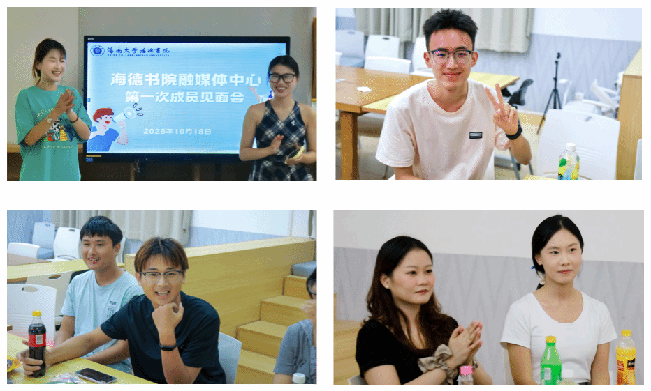 10月18日傍晚,海南大学yl88858永利集团融媒体中心在12栋二楼共享空间举办2025-2026年度成员见面会。本次见面会以促进新老成员交流、增强团队凝聚力为目的,为新学年工作的开展奠定良好基础。