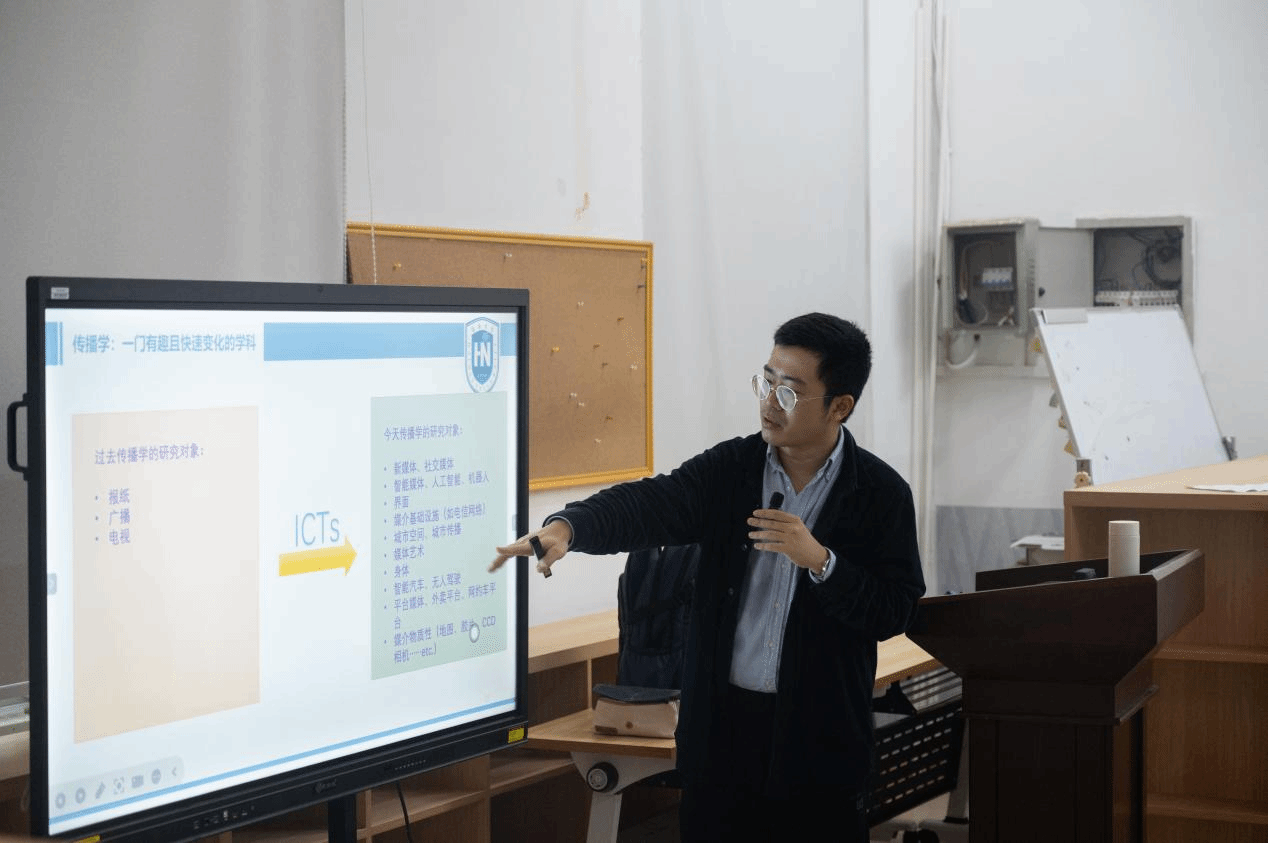 在交流环节,褚传弘老师就“传播学理论如何有效应用于实践”这一问题作出回应。他强调,学生应广泛阅读经典与前沿学术著作,通过深入阅读培养问题意识,并在理论联系实际的过程中探索问题解决方案。