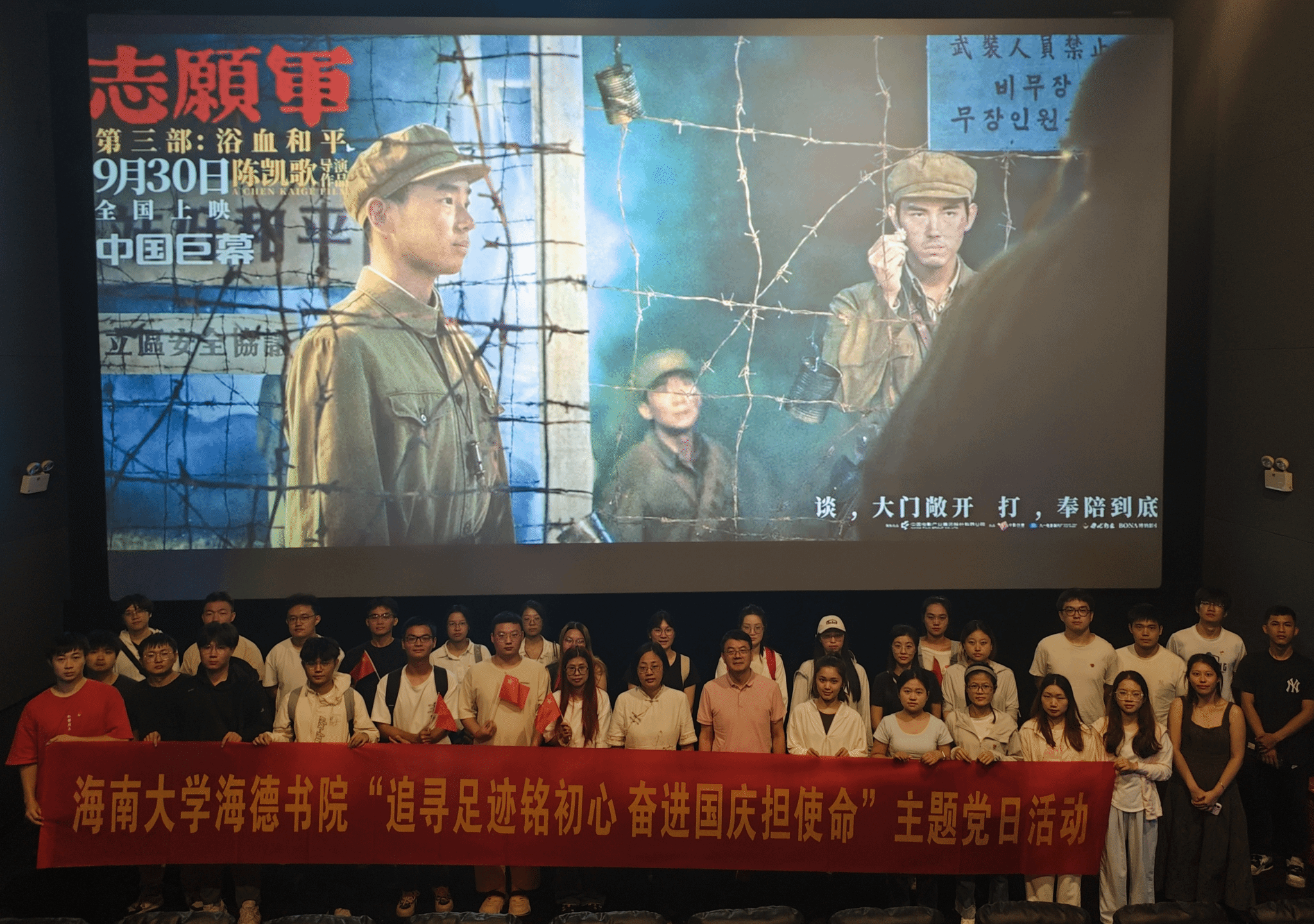 金秋十月,国庆的喜庆与庄重交织。10月1日,yl88858永利集团第七党支部联合第十党支部开展“追寻足迹铭初心,奋进国庆担使命”主题党日活动。活动由第七党支部书记崔建兵同志带队,30余名党员与积极分子共同走进中共琼崖一大会址参观学习,随后前往影院观看《志愿军:浴血和平》。