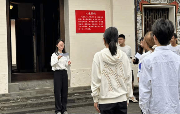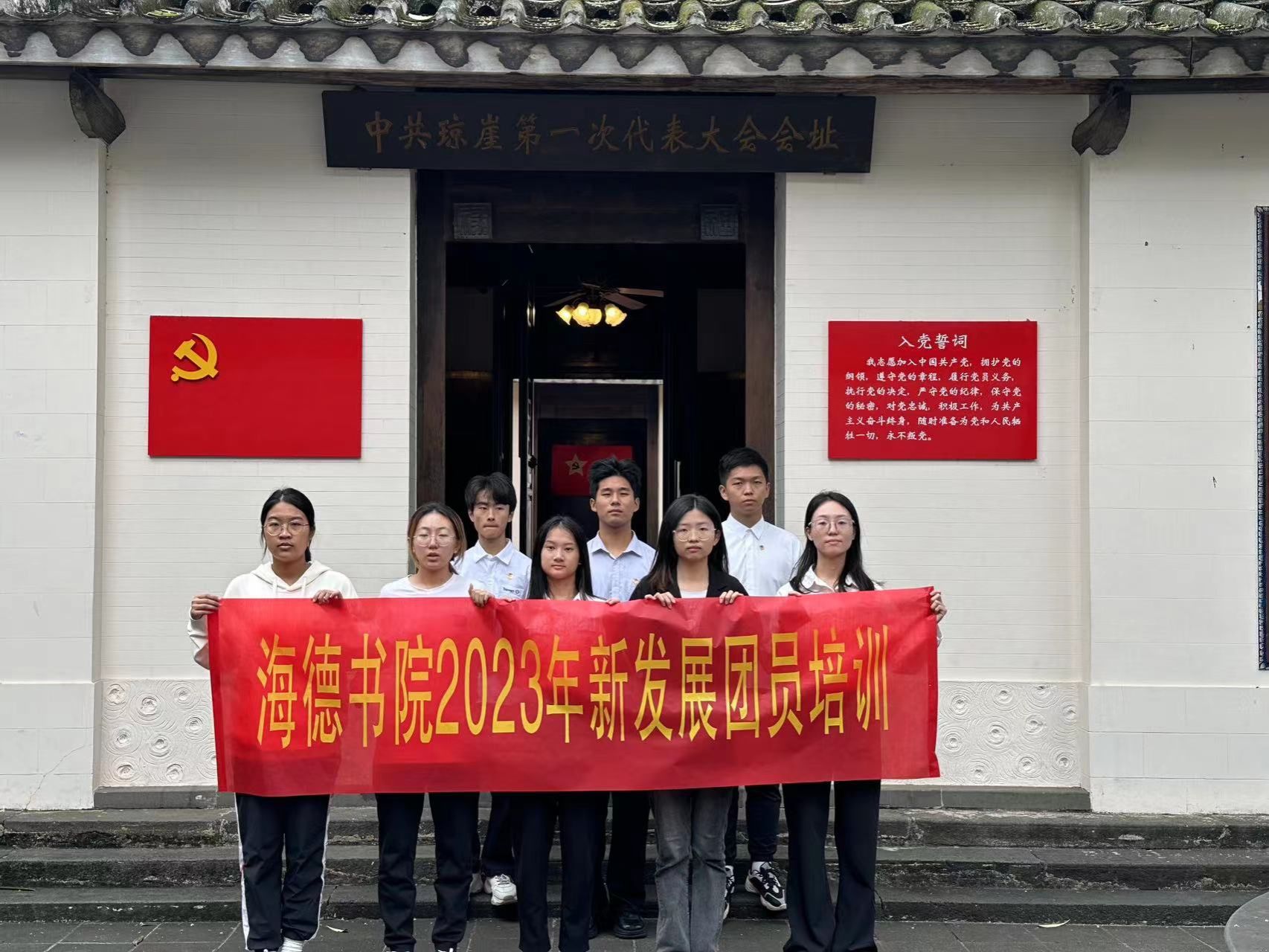 123日海南琼崖一大旧址,7海德学子伴随着庄严雄壮的国歌、团歌许下坚定誓言,yl88858永利集团又一批新发展团员光荣加入中国共产主义青年团。