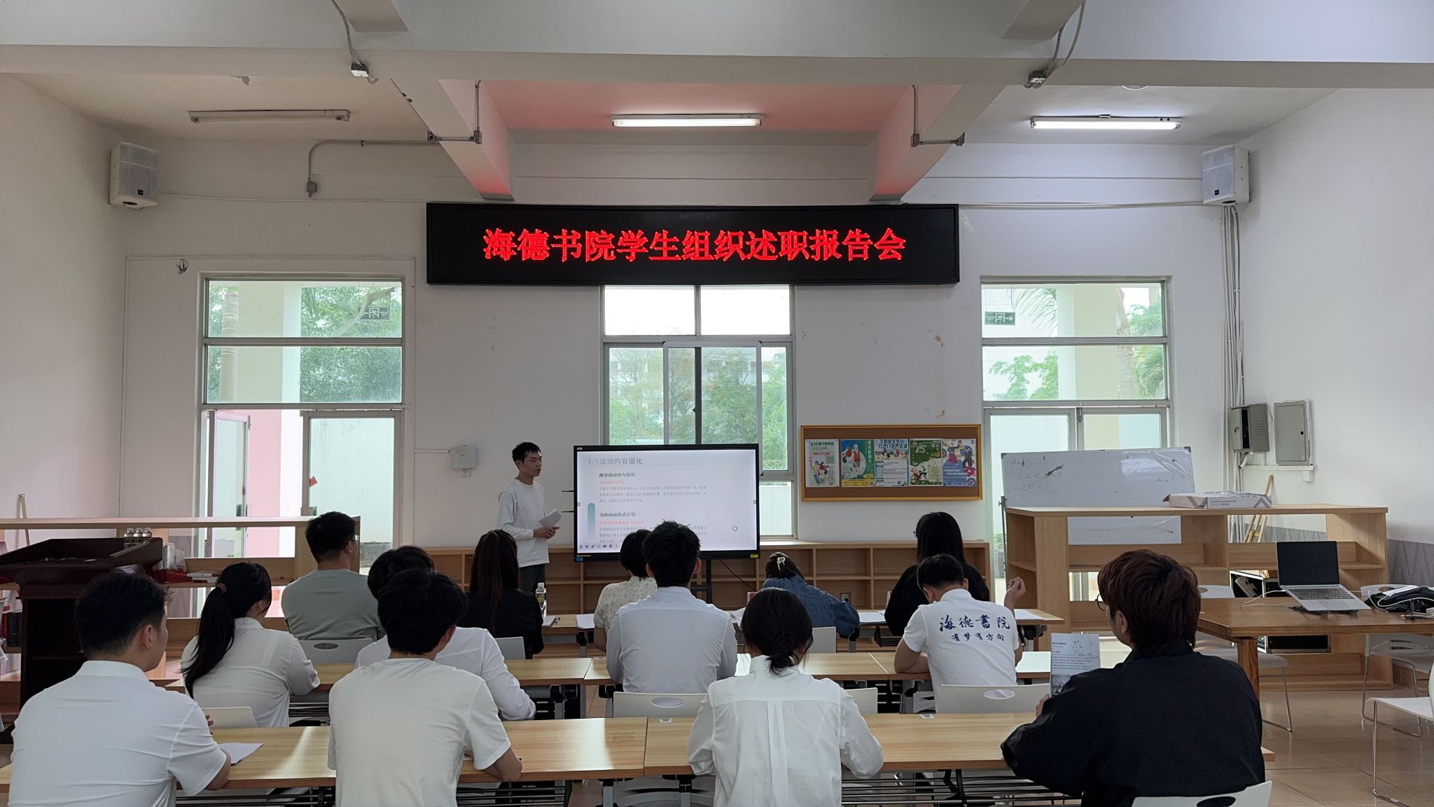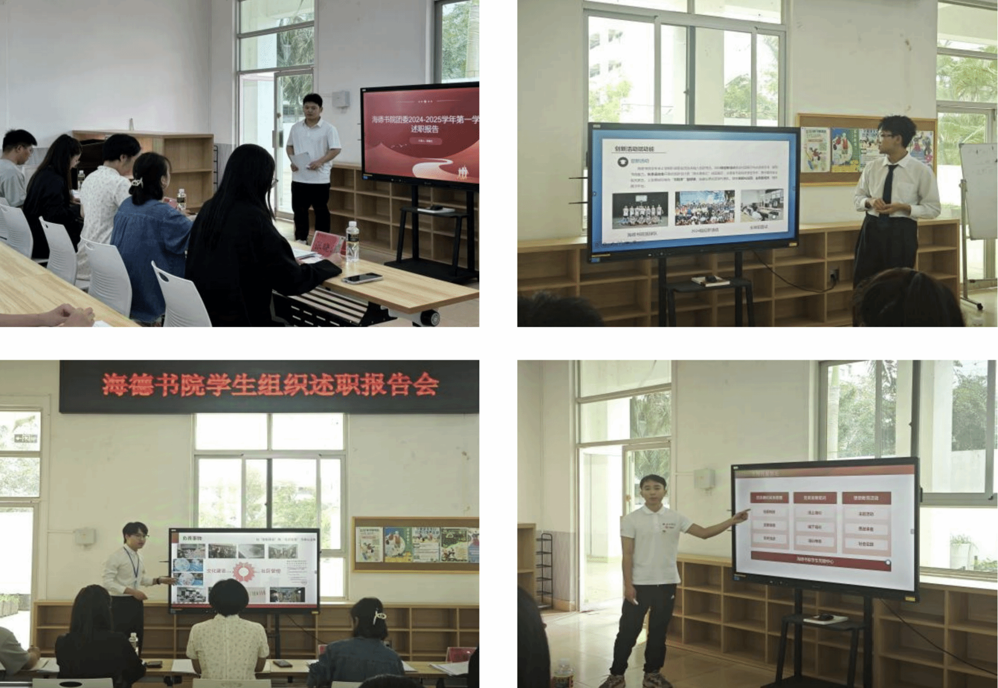 会上,来自团委、学生会、自管会、党建中心、心理中心、研究生会、融媒体中心以及青年志愿者协会八大组织的代表们依次登台述职汇报。在汇报过程中,各位代表围绕工作回顾、总结反思、未来规划等维度展开详细阐述,深入剖析了过往工作中存在的短板,并针对性地提出切实可行的改进策略,力求在后续工作中不断优化,推动各项事务迈向新台阶。