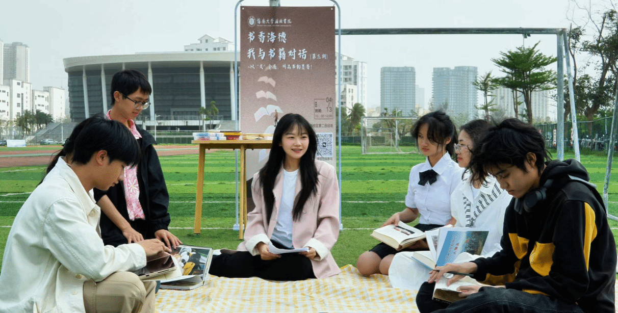 4月13日上午十点,海南大学海甸校区第二田径场化身“露天书房”,一场以“以文会友,同品书韵墨香”为主题的春日阅读活动在此举行。活动通过书籍漂流、创意书签绘制、朗读分享三大环节,为学子打造沉浸式阅读体验,吸引众多参与者共赴这场思想与艺术的盛宴。