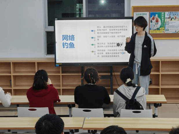 121716班团支书高锦浩同学聚焦防诈骗,提醒同学们要小心冒充熟人诈骗、虚假投资理财诈骗、情感诈骗、钓鱼网站诈骗等不法行为,呼吁同学们提高甄别虚假信息的能力、提高对诈骗的防范意识,若遇到诈骗情况,要及时向学校保卫部门、警方等报告。