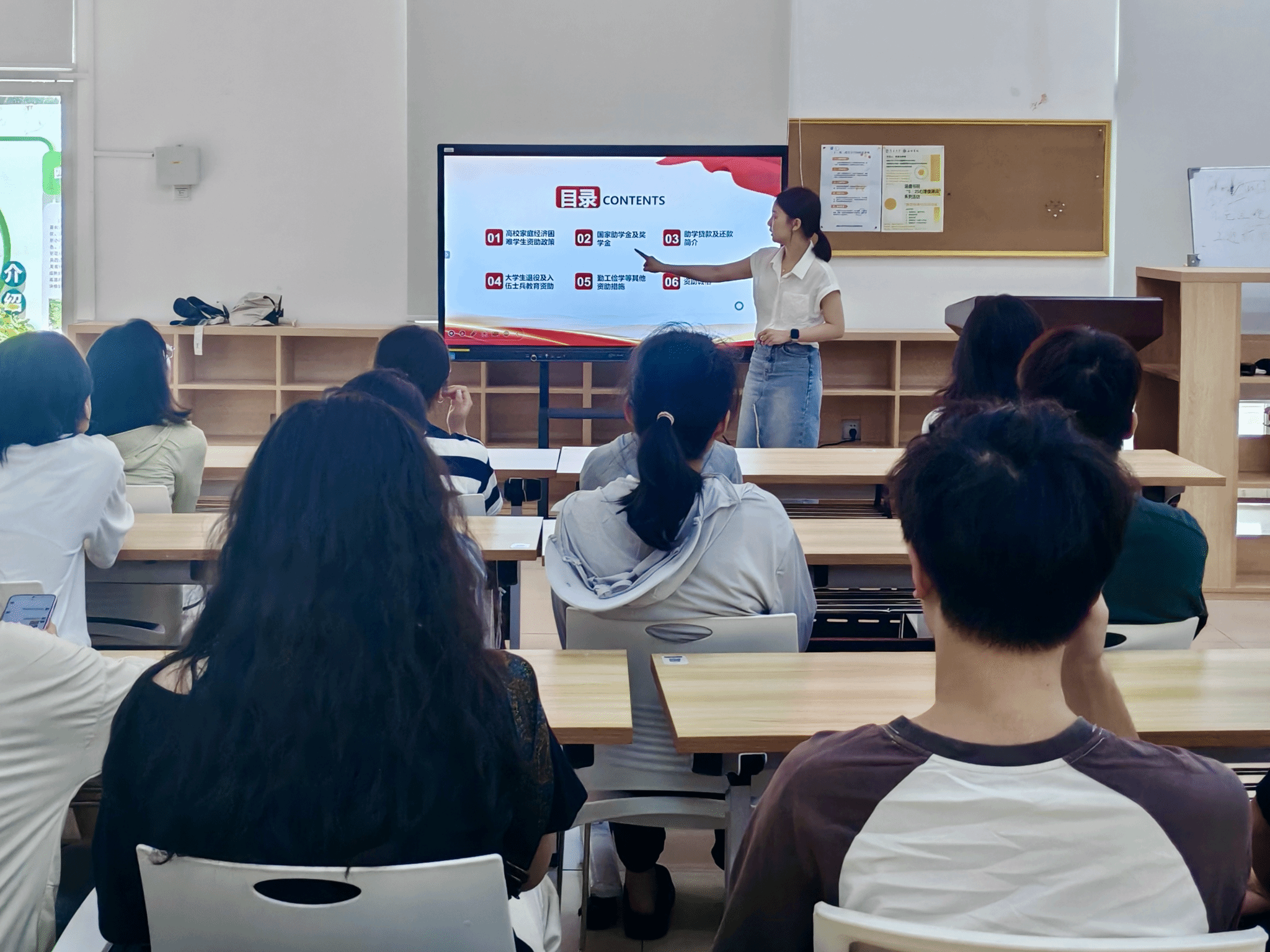 宣讲会上,王松锐老师详细讲解了家庭经济困难学生认定最新标准与流程、国家奖助学金申报要求,介绍了学校勤工助学岗位的申请渠道,并重点说明了助学贷款的续贷流程及还款义务。王老师特别强调,“诚信是立身之本”,呼吁同学们在申请资助时务必恪守诚信原则,如实填报家庭经济状况,杜绝虚报、瞒报行为。同时,她提醒同学们要提高防范意识,警惕各类诈骗手段,不轻信他人、不随意点击陌生链接、遇到疑似诈骗行为应积极寻求帮助。