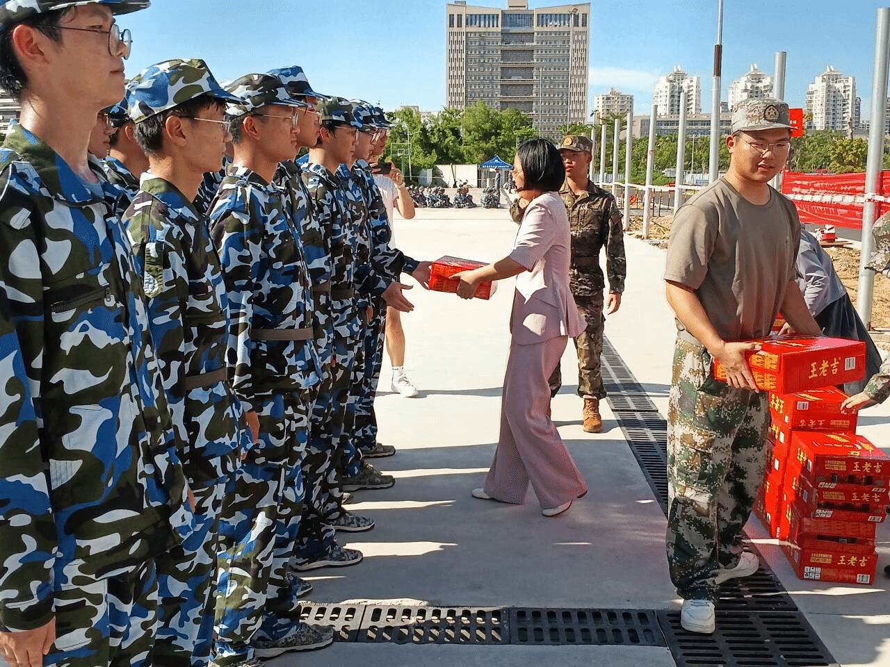 慰问期间,书记带领辅导员们将一箱箱满载着关怀的清凉饮品递到每个分队的新生代表手中,叮嘱大家在认真训练的同时,务必注意防暑降温,科学参训,劳逸结合,确保身体健康。新生代表将这一份清凉,一份关爱,送至每位新生手中,现场的欢声笑语驱散了训练的疲惫,凝聚了浓浓的书院温情。