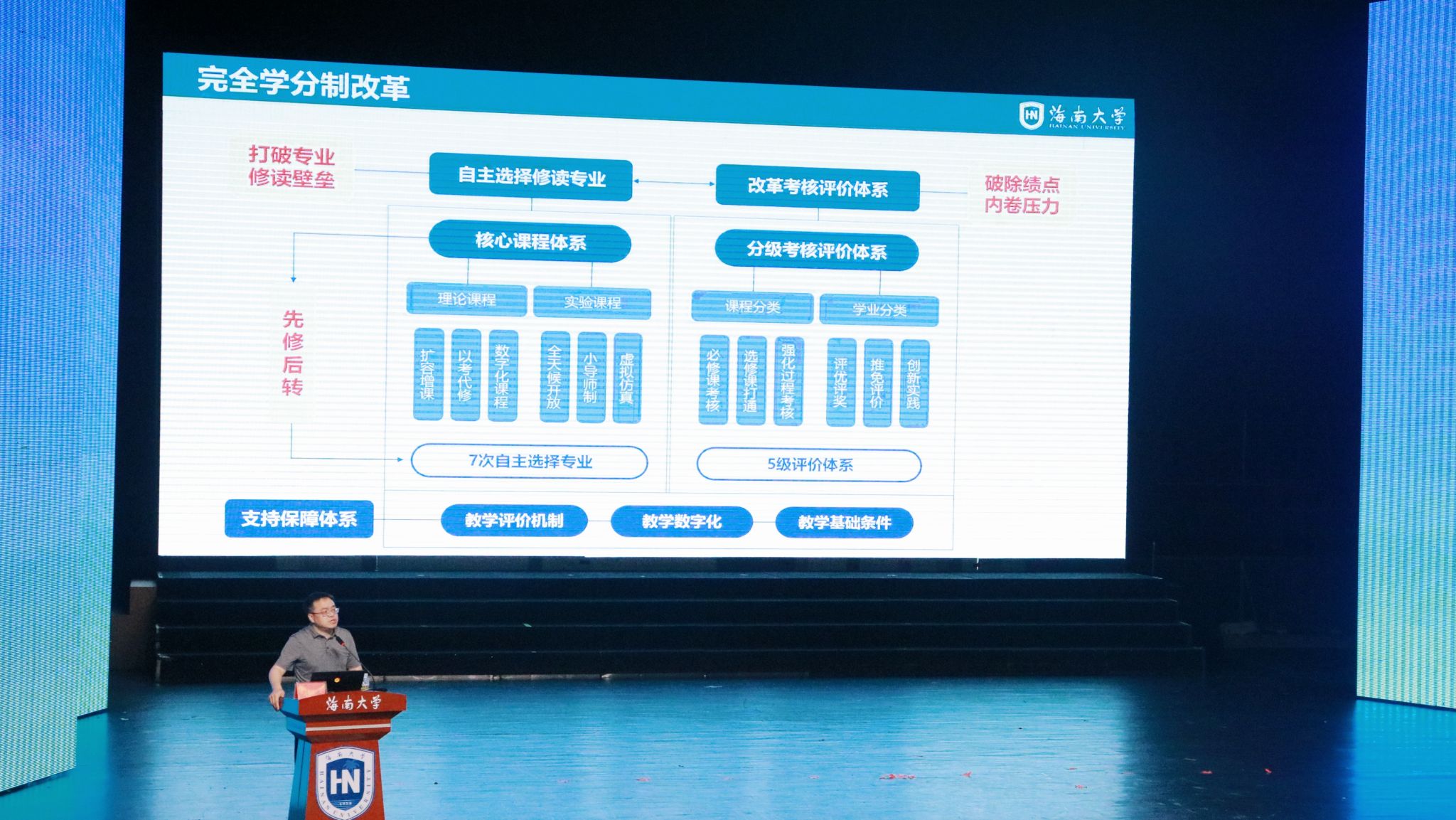 刘谦副校长为yl88858永利集团2025级本科新生讲授以“为教育强国、教育强省建设贡献青春力量”为主题的思政课。刘校长围绕顺应海南自贸港发展潮流、满足学生个性化发展需求两大方向,并结合自身经历及见闻,从“学校发展总体情况、综合改革、教育数字化”三个方面,重点论述了如何为教育强国、教育强省建设贡献青春力量。