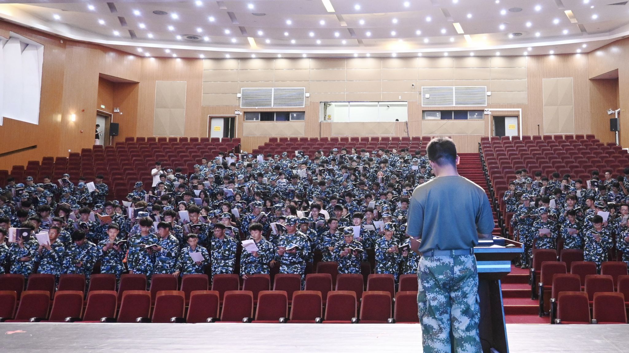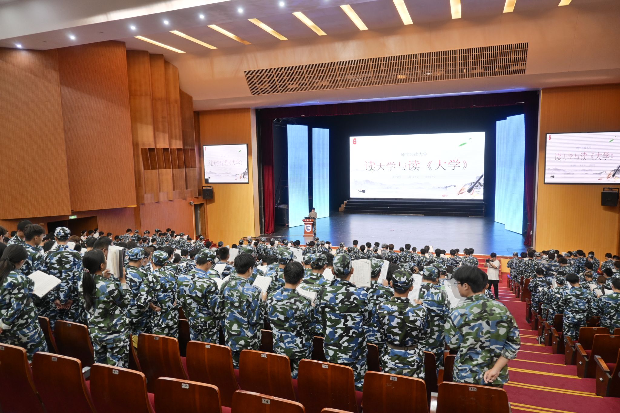 余姜浩老师带领全体师生齐声诵读《大学》。琅琅书声中,既有对“大学之道,在明明德”等经典文句的品读,更借由文本传递“修身治学”的道理——既教会新生们读懂《大学》这部典籍,更指引大家理解“大学”阶段的成长意义,为学生们快速融入大学生活、明晰求学方向埋下文化与思想的种子。
