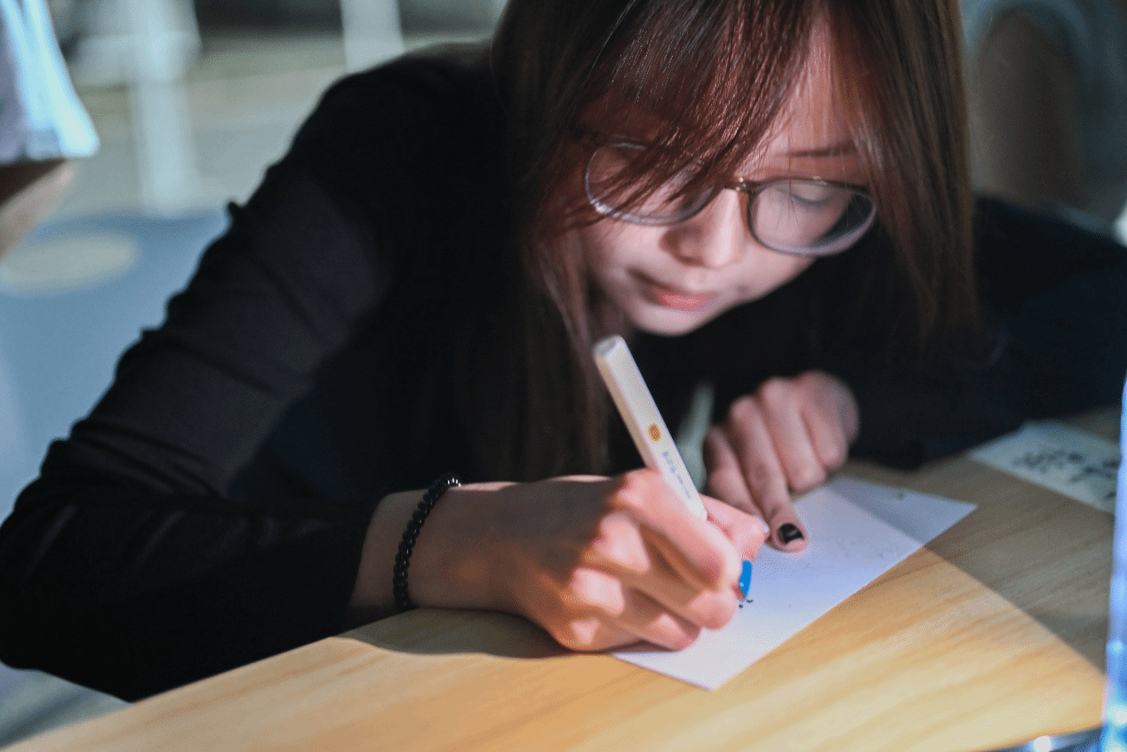 同学们正为彼此写下中秋祝福 王亚鸿 杨庆辉 摄