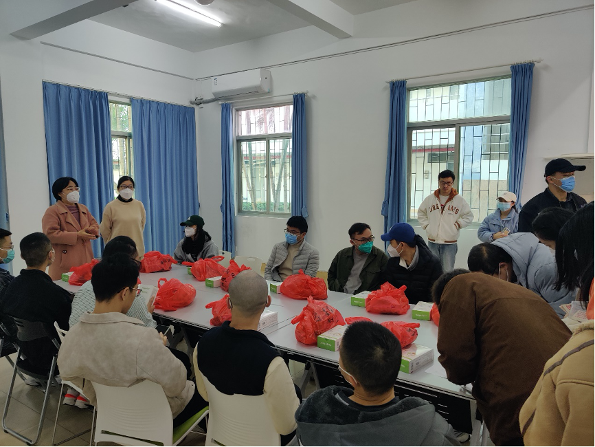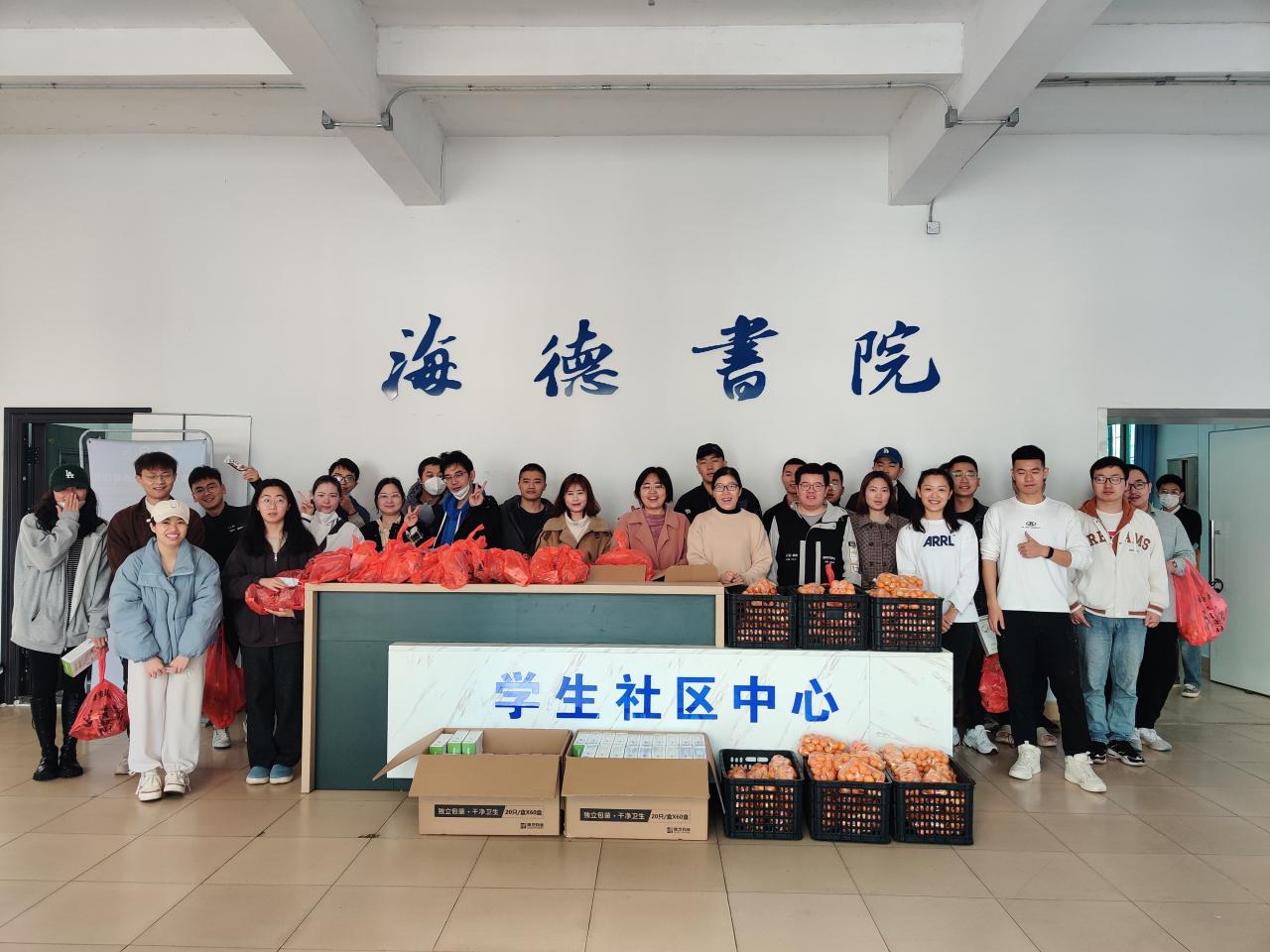 随后韩书记及武老师向留校学生们赠送了书院精心准备的水果、新年糖瓜子花生及口罩等新春慰问大礼包,将书院的关怀传递给在校的每一位同学并送上诚挚的兔年祝福。