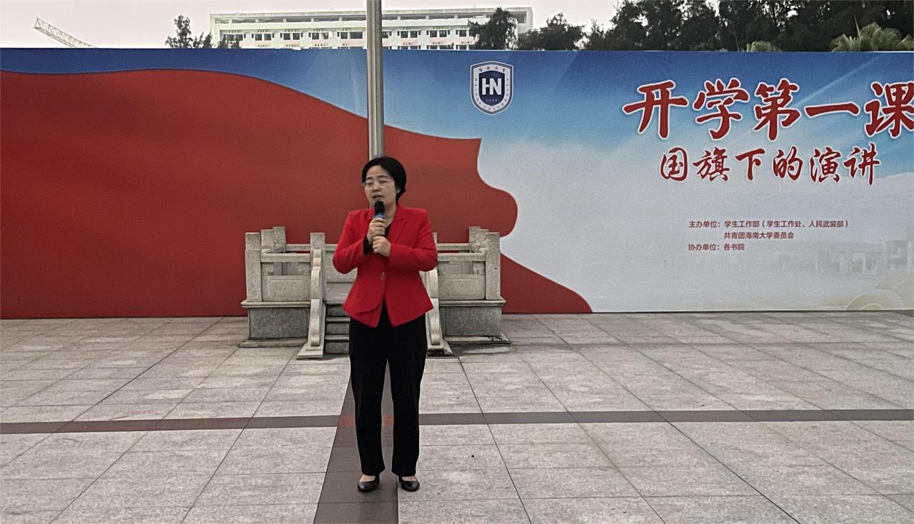升旗仪式结束后,书院党委书记韩胜丁以《大学之道在明明德》为题做国旗下讲话并对同学们提出了三点要求:一、立德修身,崇德向善。“德者本也,财者末也”,德是根本、德是方向。一个人只有明大德、守公德、严私德,其才方能用得其所。修德,既要立意高远,又要立足平实。养大德者方可成大业。要立志报效祖国、服务人民,这是大德,也要从做好小事、管好小节,踏踏实实修好公德、私德,学会勤俭,学会感恩、学会助人,学会谦让、学会宽容,学会自省、学会自律。韩胜丁书记强调,“德”是需要我们每个人去修炼和提升的,希望同学们励志成为一个德行兼备的人。二、潜心求学,笃行求真。韩书记指出,在大学生活中,学习绝不仅仅是专业学习,同学们应兼顾学习和课外活动。希望同学们充分利用大学里为同学们提供的各类资源,把握住机会,提升自己,不断尝试,跳出“舒适圈”,在探索中走出自己的道路。三、增强体魄,健康生活。韩书记呼吁同学们要爱护自己的身体,作息规律,养成良好的生活习惯,并且一定要提高警惕,谨防电信网络诈骗、注意交通安全、消防安全等各种安全,为自己和他人负责。在学习之余应当有运动规划,热爱运动,热爱生命,强身健体。