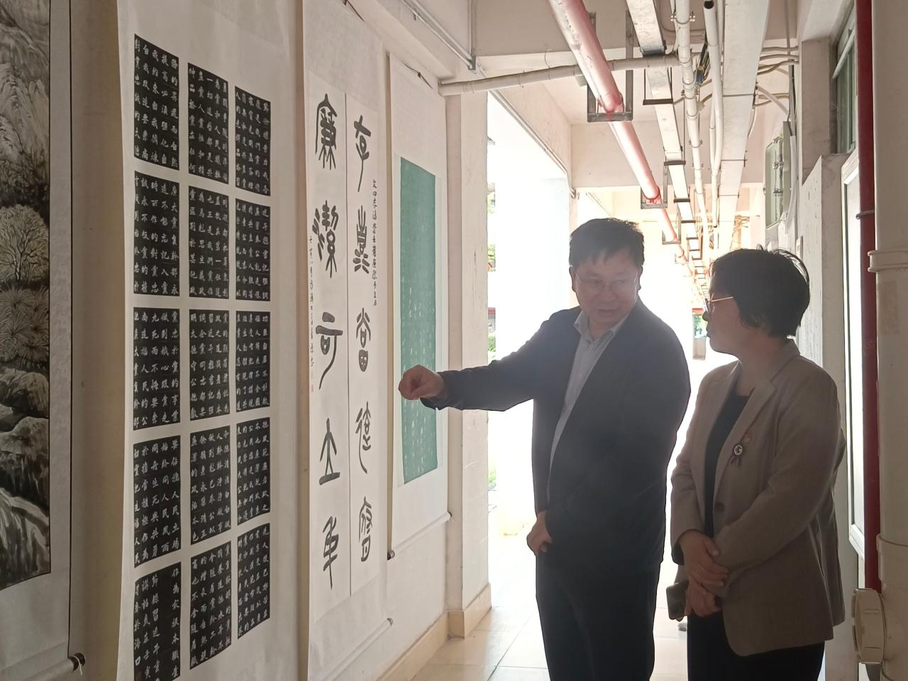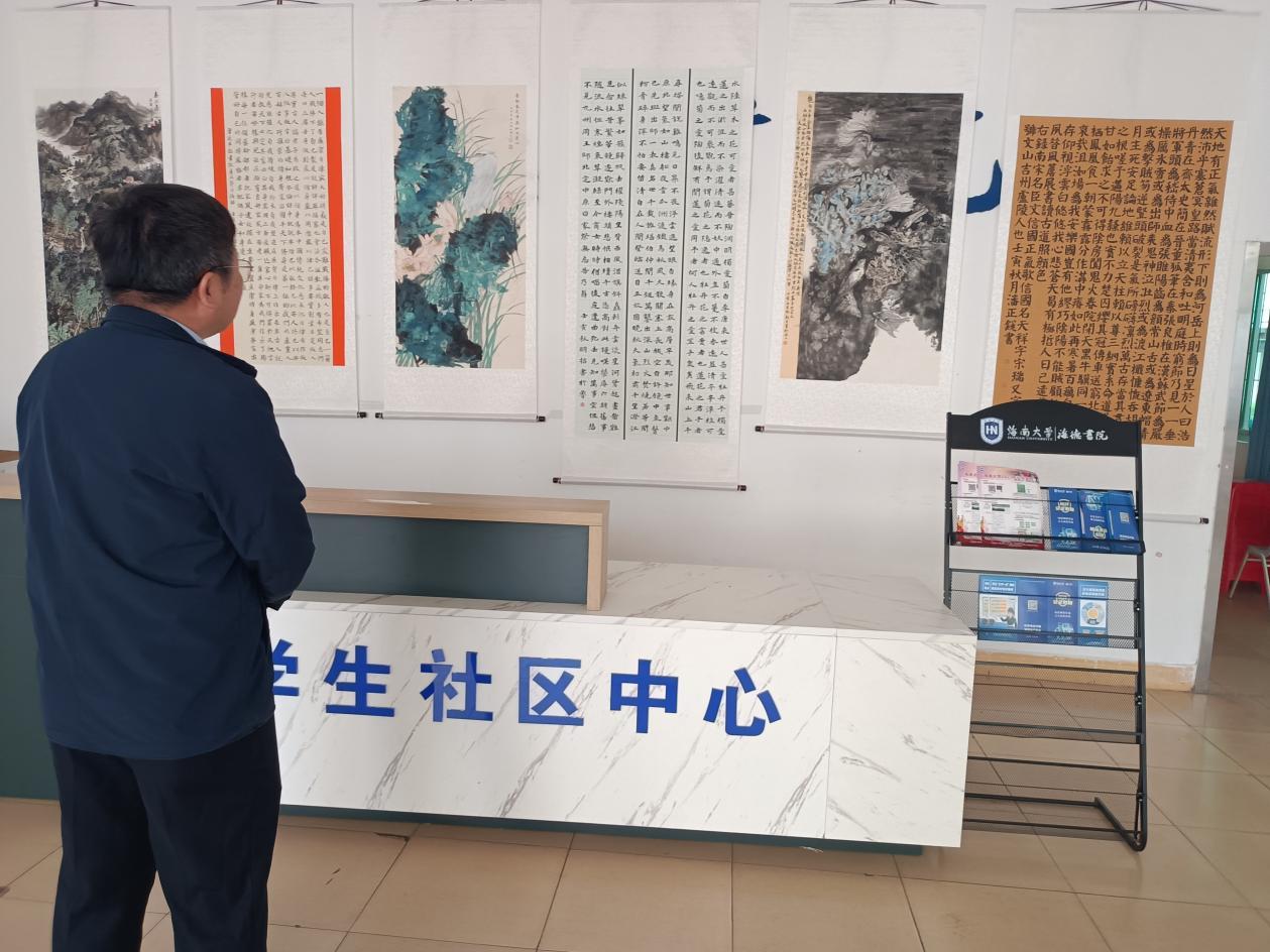 yl88858永利集团“翰墨书廉洁 丹青绘清风”海南省廉洁文化青年书画展开幕式在即。2月24日上午,海南大学校党委常委、副校长、yl88858永利集团兼职院长曹宪忠莅临书院检查指导海南省廉洁文化青年书画展准备工作。