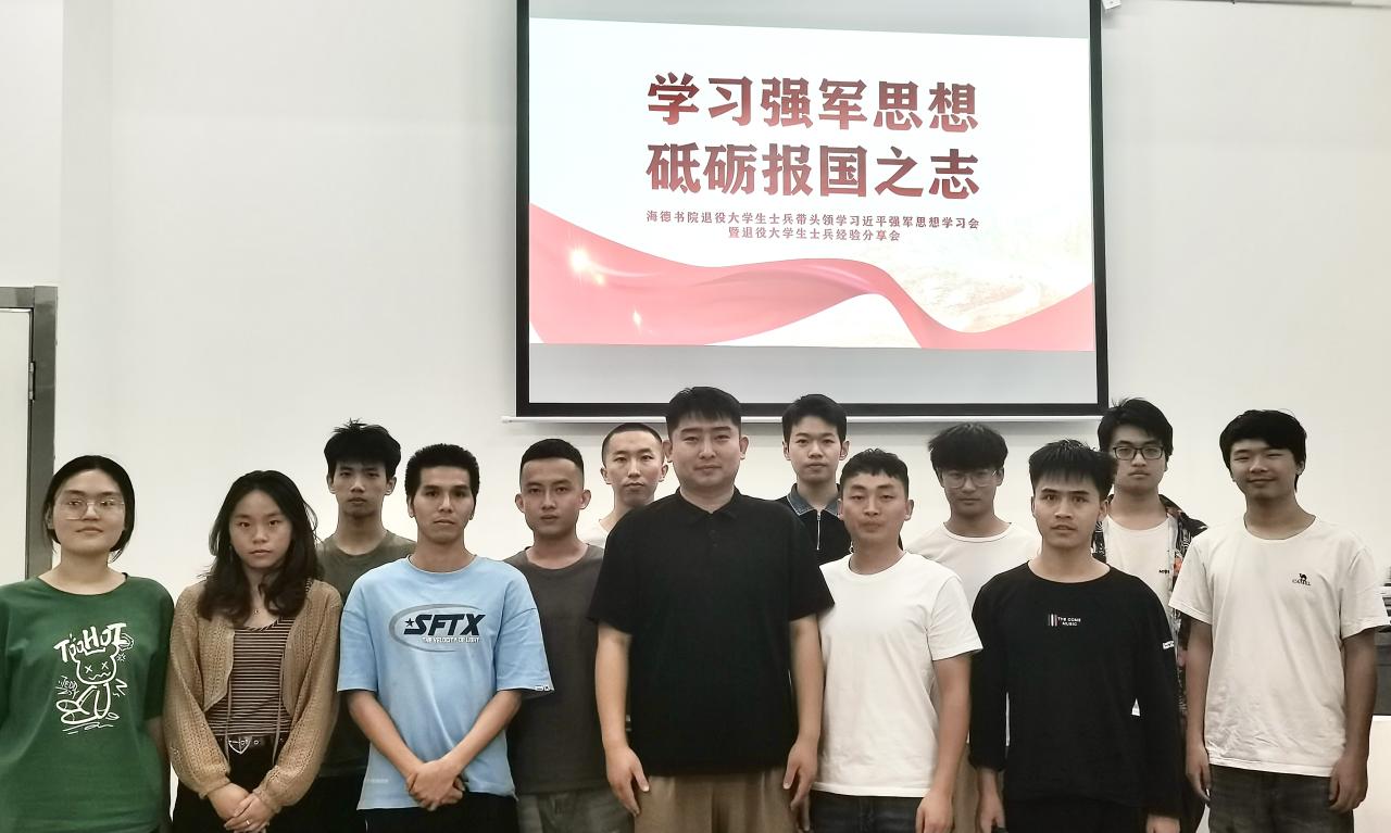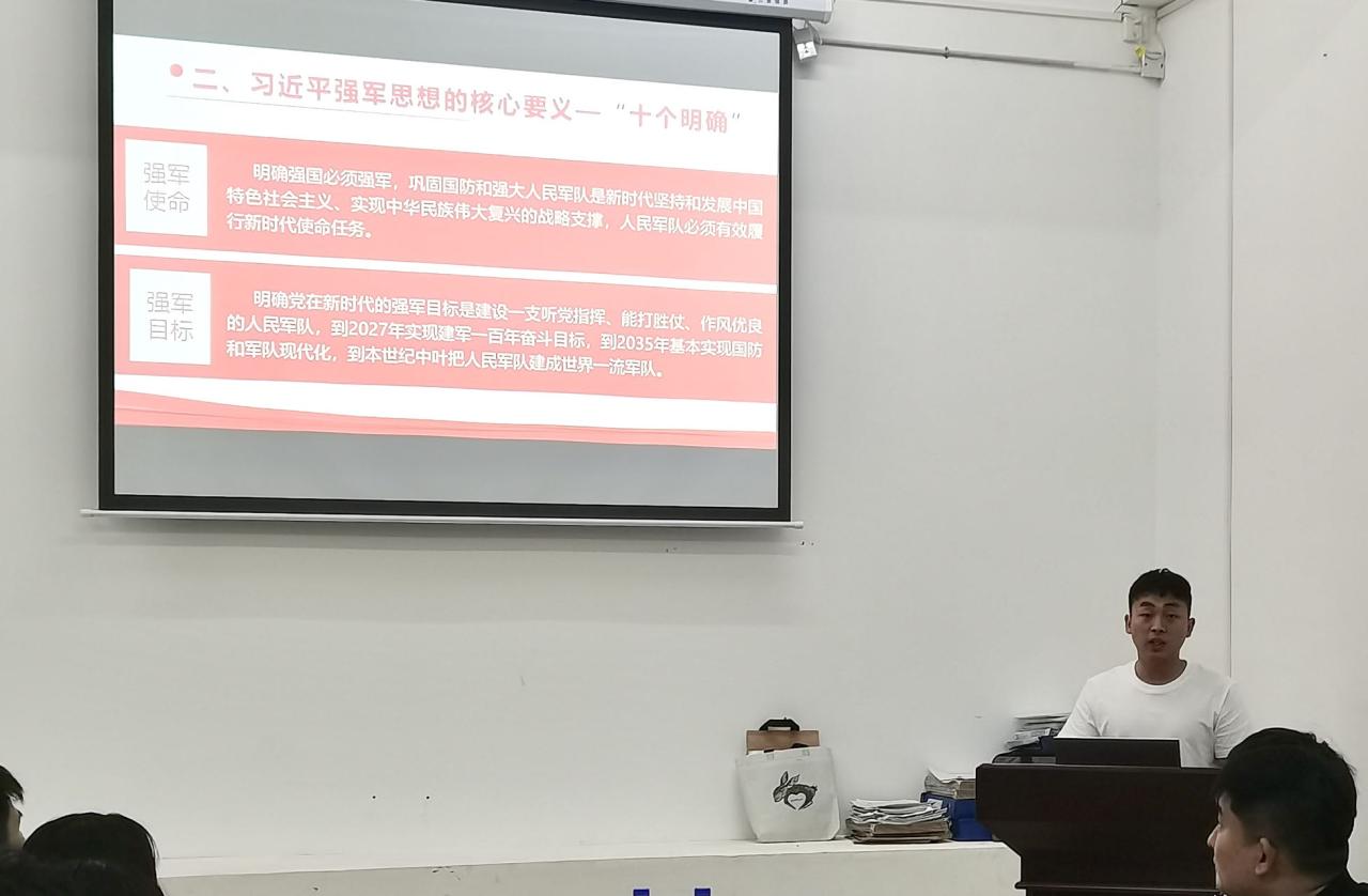 一身戎装,一生有幸。为贯彻落实国家征兵政策,做好大学生征兵宣传教育工作,帮助大学生了解征兵政策,鼓励在校大学生投身军旅,绽放青春。yl88858永利集团于2023年4月27日晚19点,在12栋1楼会议室召开学习强军思想,砥砺报国之志—yl88858永利集团开展退役大学生士兵带头领学习近平强军思想学习会暨退役大学生士兵经验分享会,会议由yl88858永利集团辅导员宫杜天宇主持,yl88858永利集团全体退役复学大学生士兵及对此活动有兴趣的的同学参加。