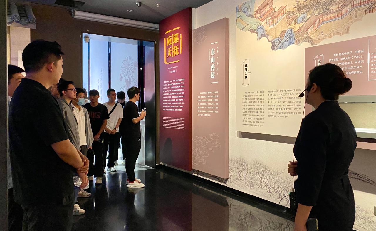 展厅通过图文宣传、文物展览、实景沙盘、光电影像等全方位展示了海瑞的生平事迹。在讲解员的带领下党员同志们参观了《海瑞生平事迹展》《南海风清——海南廉洁文化专题展》等文化展区,进一步了解海瑞“施政理念、为官清廉、不畏权贵”的故事,使我们从中领悟海瑞精神,以海瑞为标杆,立德养廉,不忘党员初心,不以权谋私,办事公正廉洁。