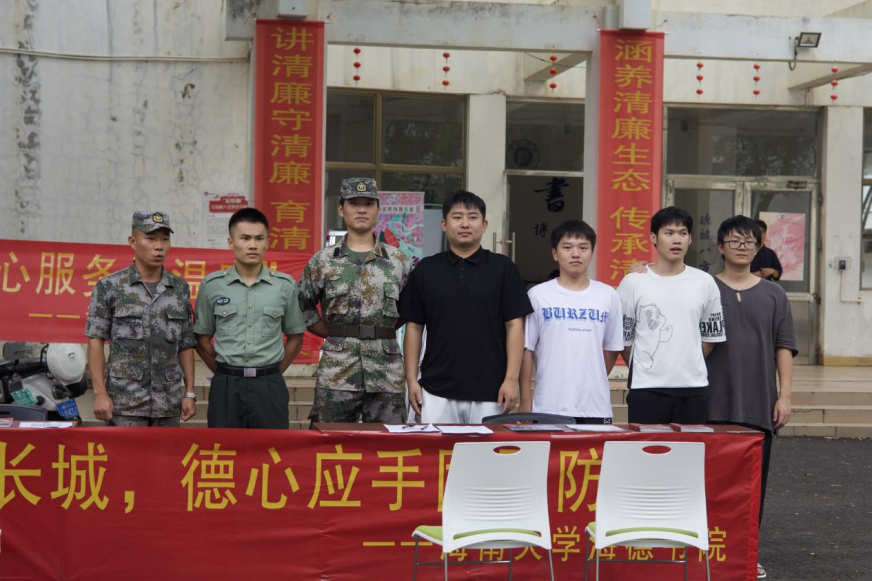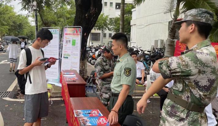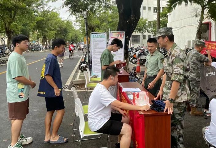 当天,yl88858永利集团携手淳明书院、军事爱好者协会和退役大学生士兵党支部开展“海陆空天筑长城,德心应手固国防”征兵宣传活动。在理发服务活动现场设征兵政策宣传点,由退伍大学生士兵开展征兵宣传咨询服务,并于现场悬挂宣讲标语,竖立宣讲展报,向学生讲解征兵政策。鼓励大学生征兵入伍报国,将个人理想融入国防安全战略中,在军营实现人生梦想。
