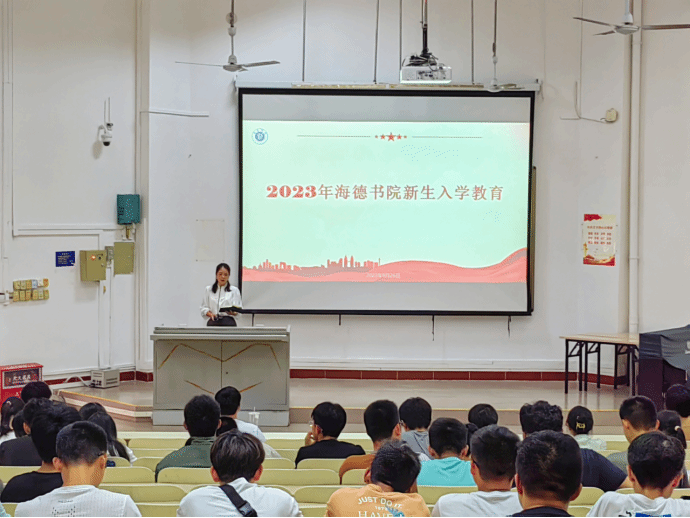 9月26日下午,海南大学yl88858永利集团在2教-108教室举行新生入学教育大会。此次会议主讲嘉宾为海口市公安局美兰分局驻海大警务室的何小林警官。海南大学保卫处安全管理科科长王智,yl88858永利集团党委书记韩胜丁,辅导员武明明、高雯、宫杜天宇、芦怡睿和张晓涵出席会议,2023级全体本科新生参加。大会由高雯老师主持。