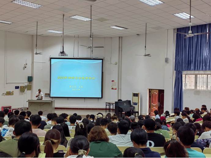 接下来,王智科长对新生们进行了2023年消防安全培训。他全面介绍了火灾预防知识和应急逃生技巧,有利于同学们树立消防安全意识,了解如何预防火灾的发生。