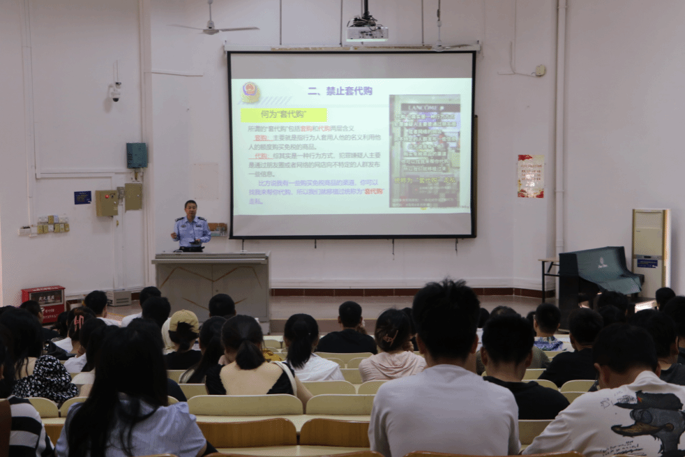 此次讲座主要包含“禁止套代购”、“防范电信网络诈骗”两个部分。何警官首先为全体同学详细讲解了“套代购”的定义、“有偿代购、充当中介、组织代购”三种主要形式、点明了行为后果,并总结了如何避免落入“套代购”陷阱的有效措施。何警官强调,同学们要抵制高利诱惑,主动维护自贸港建设,不要贪图小利,不组织利用他人套利,不抱侥幸心理为他人代购、带货,千万不要触碰走私违法的“高压线”。