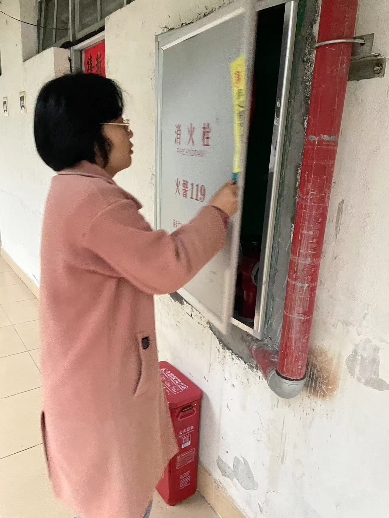 韩书记走访12、17栋所有楼层,随机测试消防设备设施功能,重点检查了消防设施是否完好、灭火器等必要消防器材是否配备、电器线路是否安全、疏散通道是否通畅等情况。检查发现,上述场所消防设施设备基本完好有效,公共区域灭火器和消火栓巡查保养基本到位,但也存在消防隐患问题,如12栋3-6楼消火栓无水、电房电箱门生锈无法上锁、部分灭火器无箱盖、部分楼道有落地晾衣架等问题,其中前三个问题已反馈给相关部门,晾衣架问题已在学生消防安全专题会议上强调要求整改。