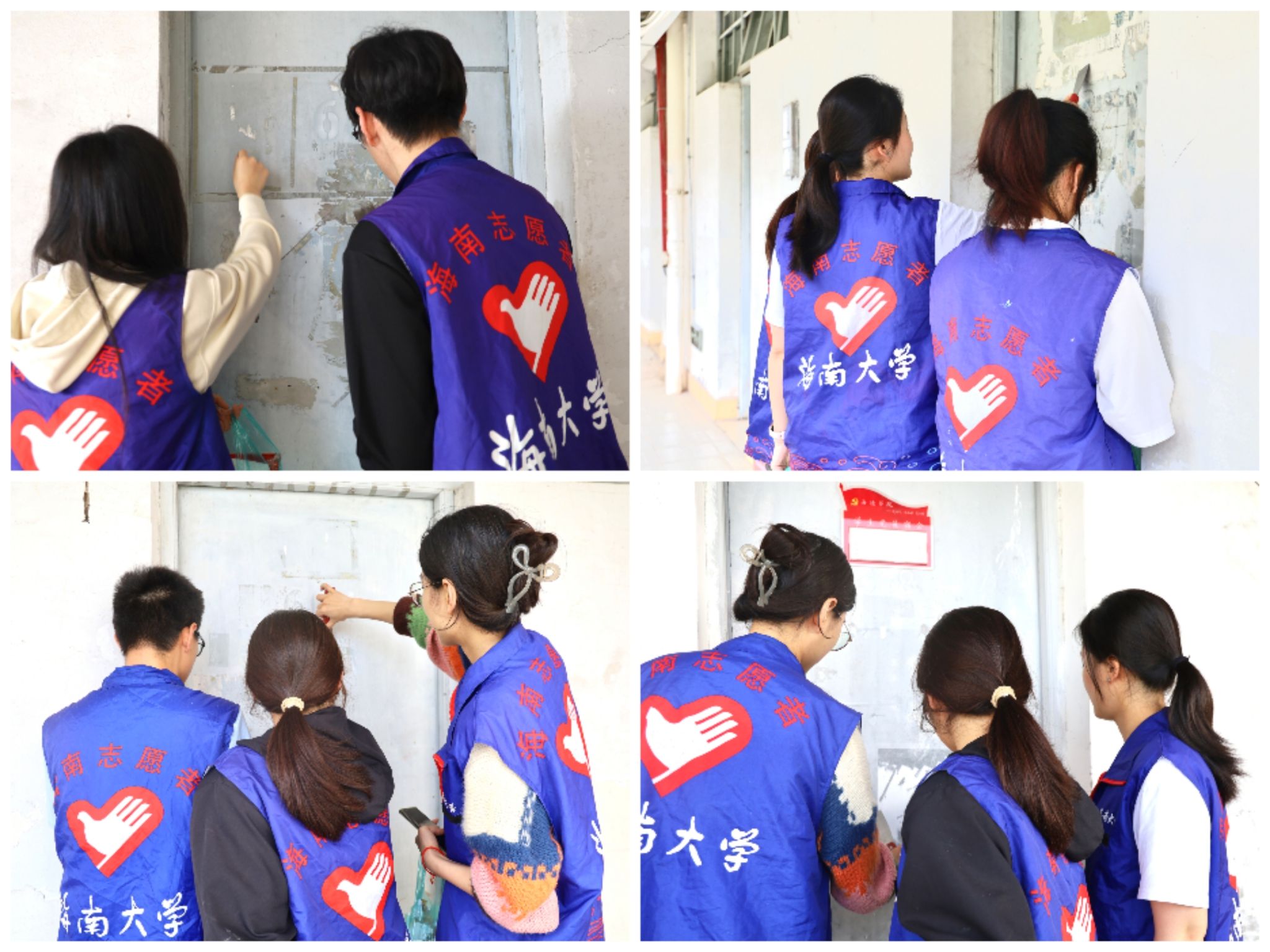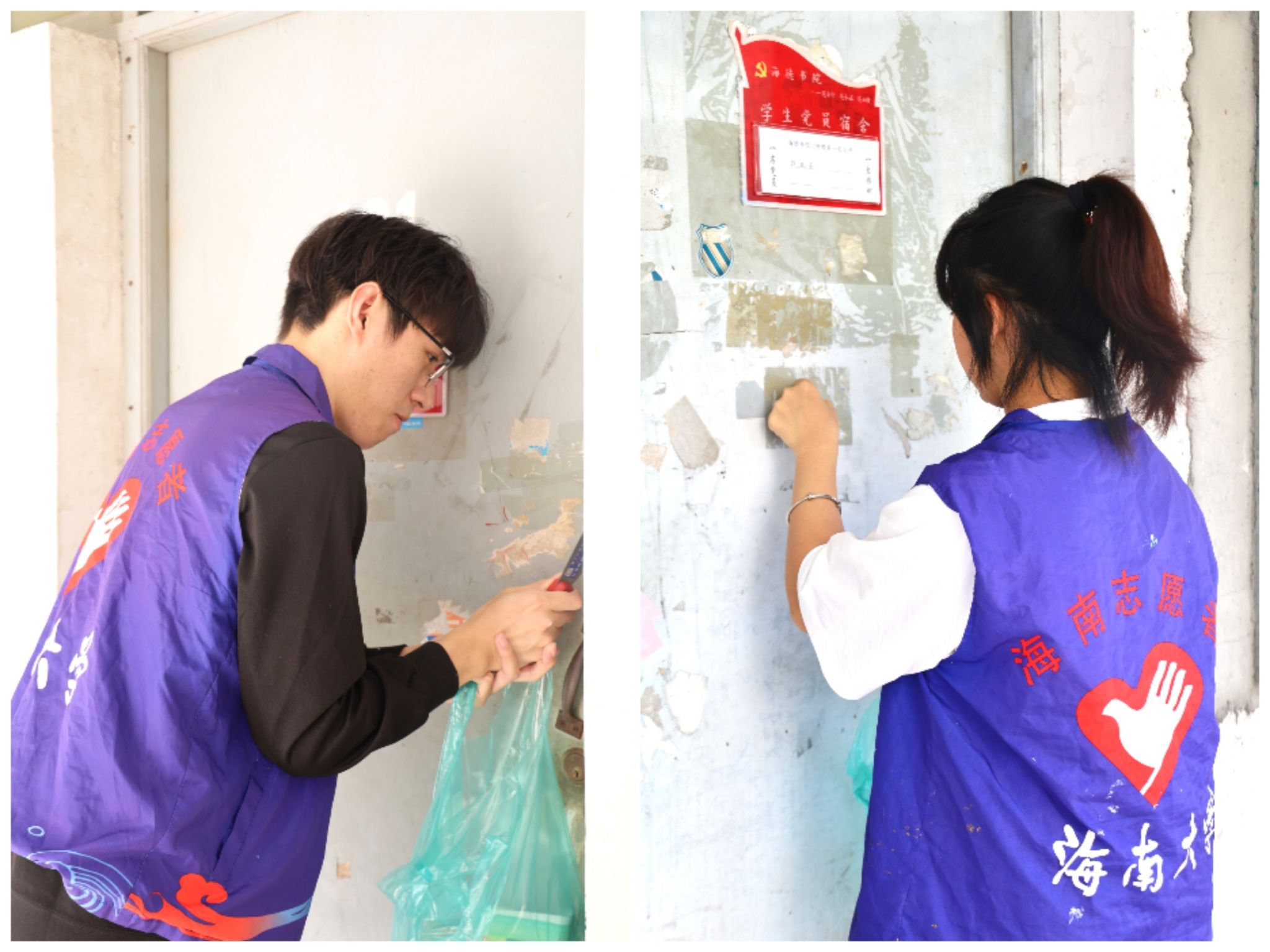 活动伊始,招募的志愿者们持铲子对每间宿舍门口的小广告、过期海报、卷边春联等进行清理。他们耐心地清洁宿舍楼内的门窗墙壁,帮助同学们保持宿舍舒适的环境,使得书院的环境更加美丽。