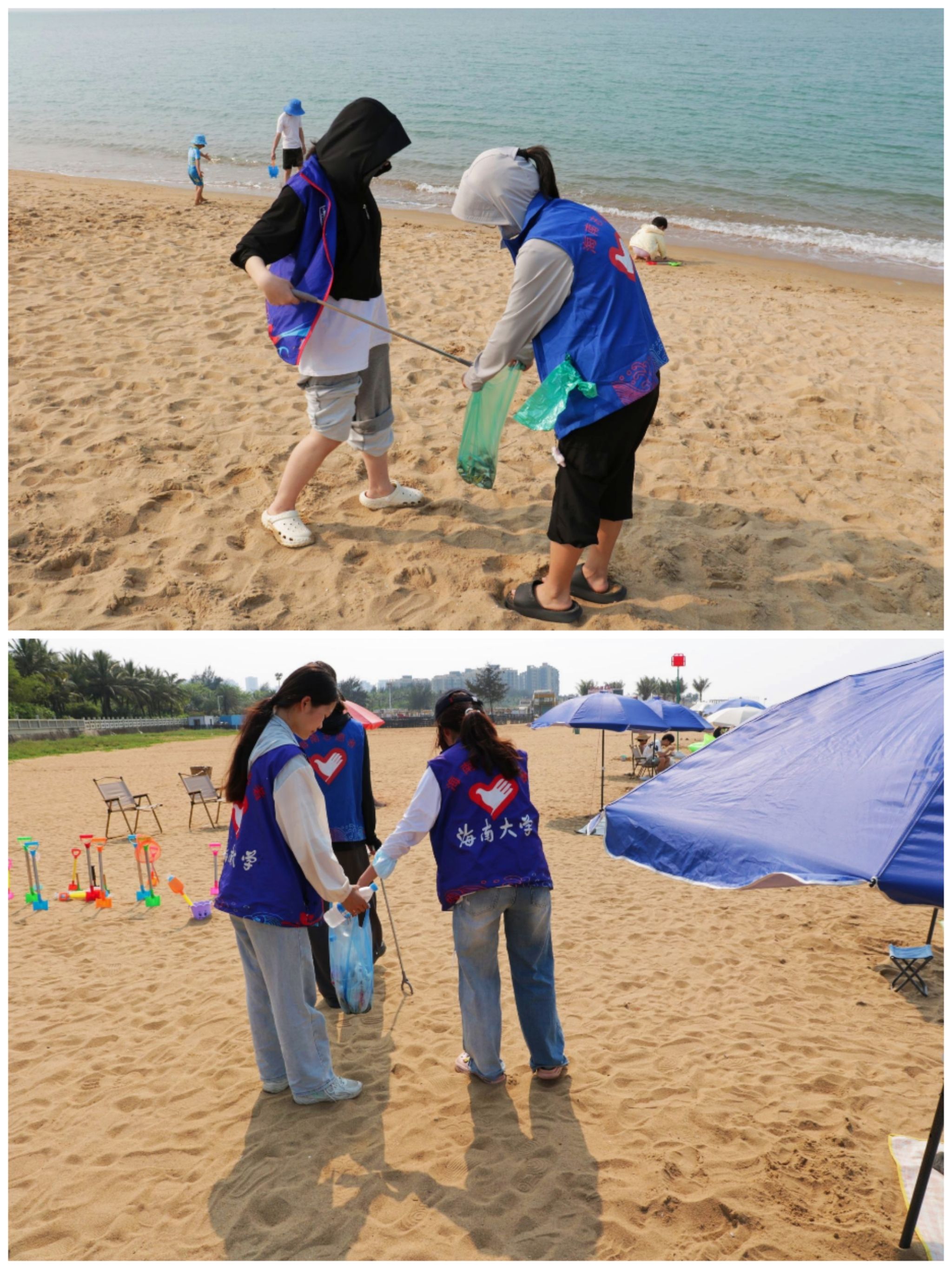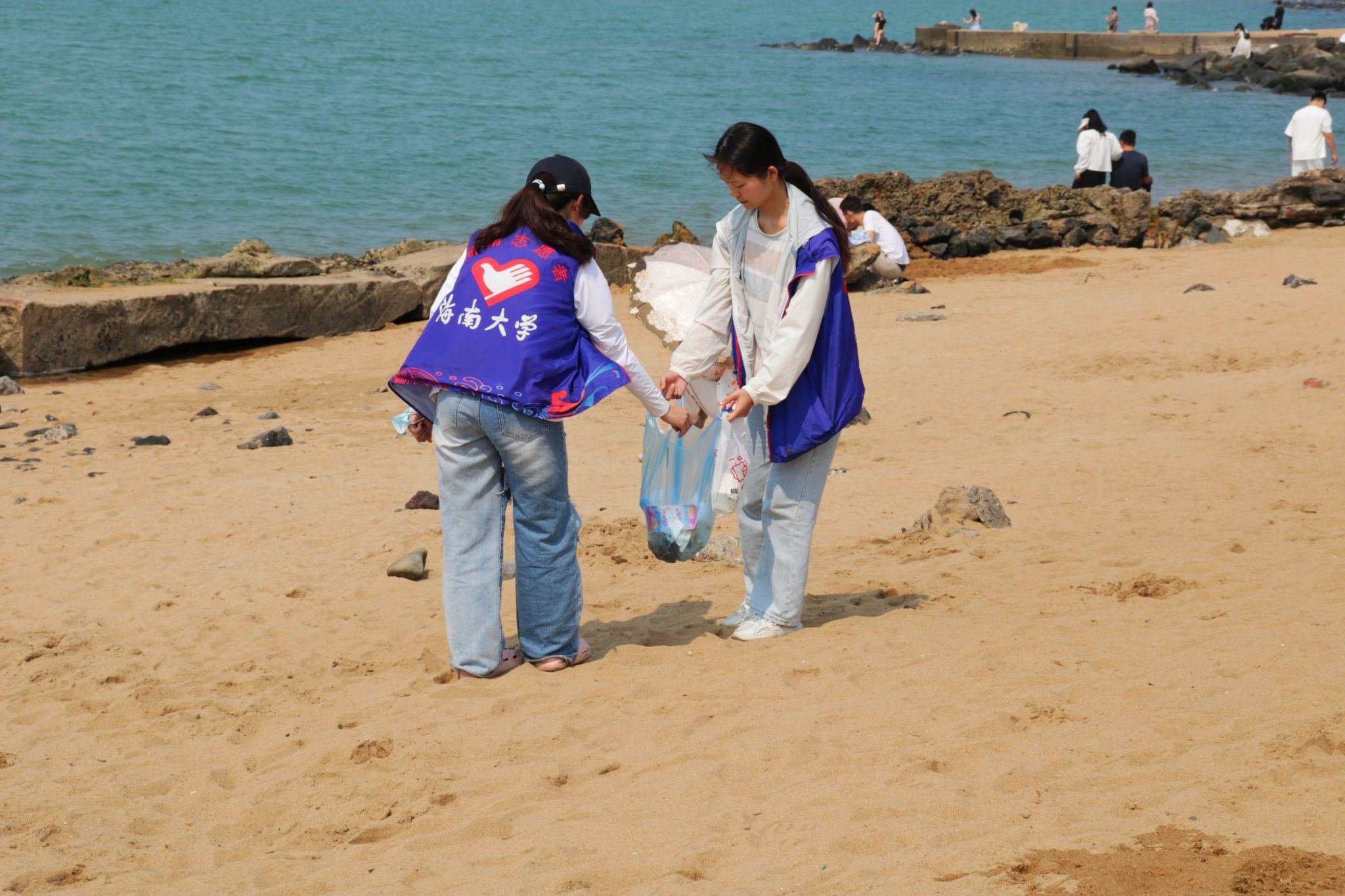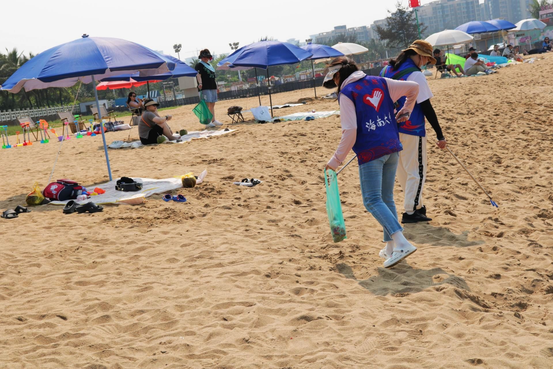志愿者们的身影成了白沙门沙滩上一道亮丽的风景。