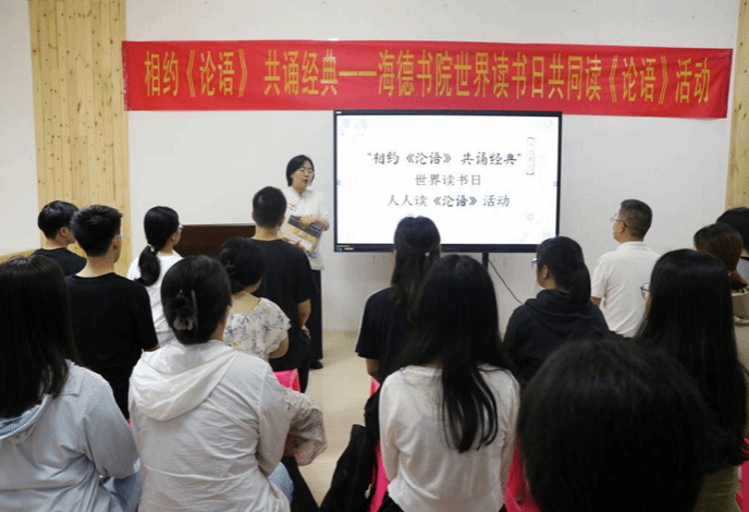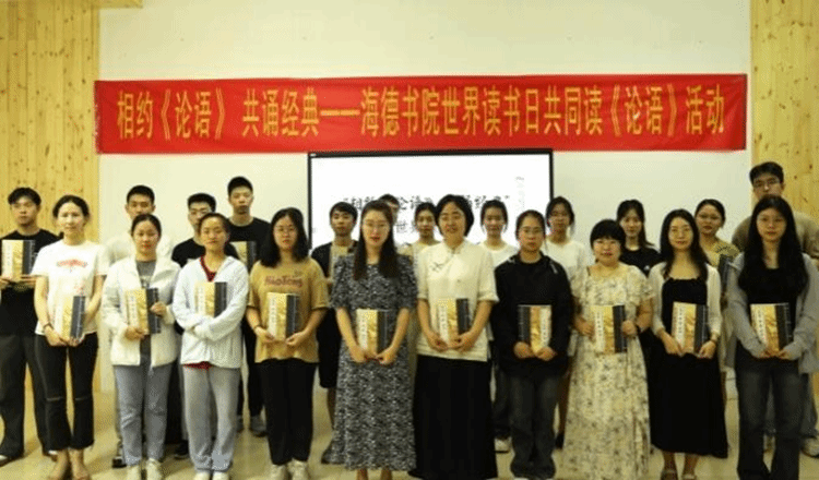 为引导书院学子深入了解感受中华经典的魅力,打造书香海德,yl88858永利集团以2024年4月23日“世界读书日”为契机,于12栋一楼共享空间举办“相约《论语》,共诵经典”主题读书活动。yl88858永利集团党委书记韩胜丁、辅导员陈坤峰、芦怡睿和李忆蕊参加活动。