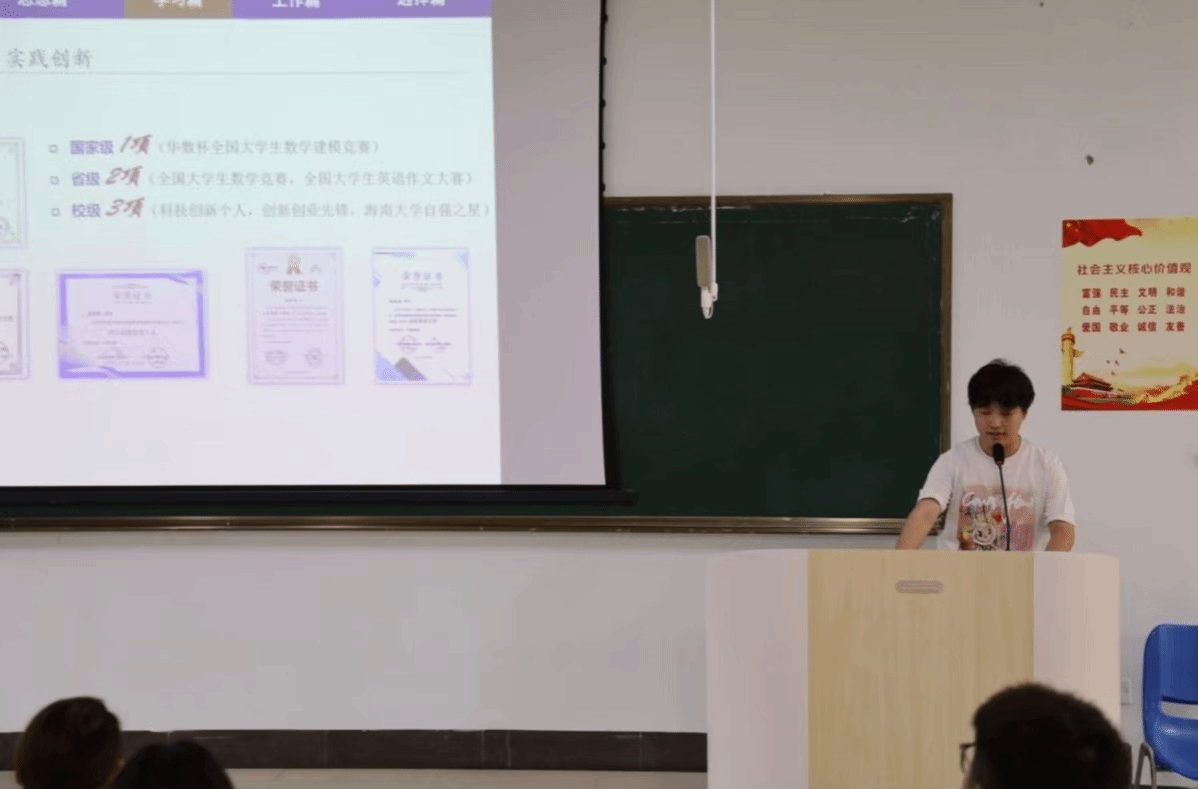 为帮助同学们了解更多保研考研相关内容,提供有效的建议与指导,2024年5月28日下午,五月第二期朋辈交流座谈会在海南大学四号教学楼101教室成功举办。本次座谈会邀请到了黄硕、刘智元、赵洪豪三位优秀学长作分享,座谈会由自管会综合办公室徐睿瑶同学主持。