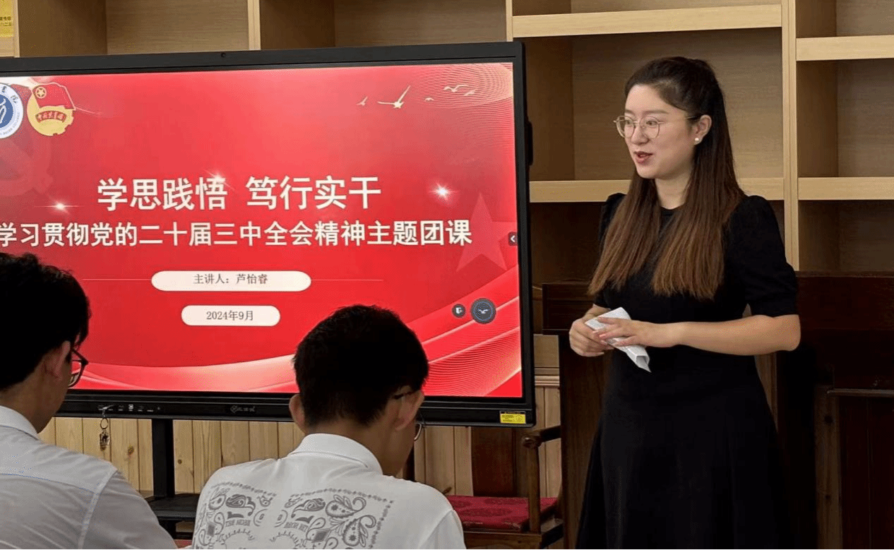 2024年9月28日,为深入学习贯彻党的二十届三中全会精神,深刻认识党的二十届三中全会精神的重大意义,海南大学yl88858永利集团在12栋1楼会议室开展以“学思践悟,笃行实干”为主题的团课,本次学习由yl88858永利集团学生工作办公室(团委)副主任(副书记)芦怡睿老师领学。