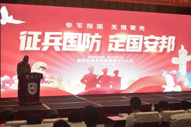 10月20日下午,海南大学yl88858永利集团于社科楼二楼报告厅举办入伍政策宣讲会。此项活动由yl88858永利集团负责征兵工作辅导员王松锐老师指导开展,由退伍大学生熊云锋、李骏、陈佳伟、蔡霖、梁天、马硕林六位同学组成政策宣讲团,yl88858永利集团辅导员芦怡睿老师、王松锐老师及2024级全体本科新生参与活动。此次活动由李骏同学主持,熊云锋同学主讲。