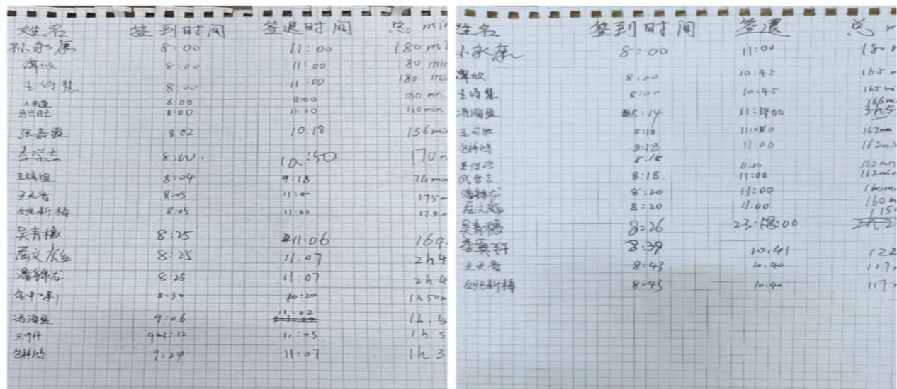 线下打卡登记表 姜传浩,马兴旺 摄