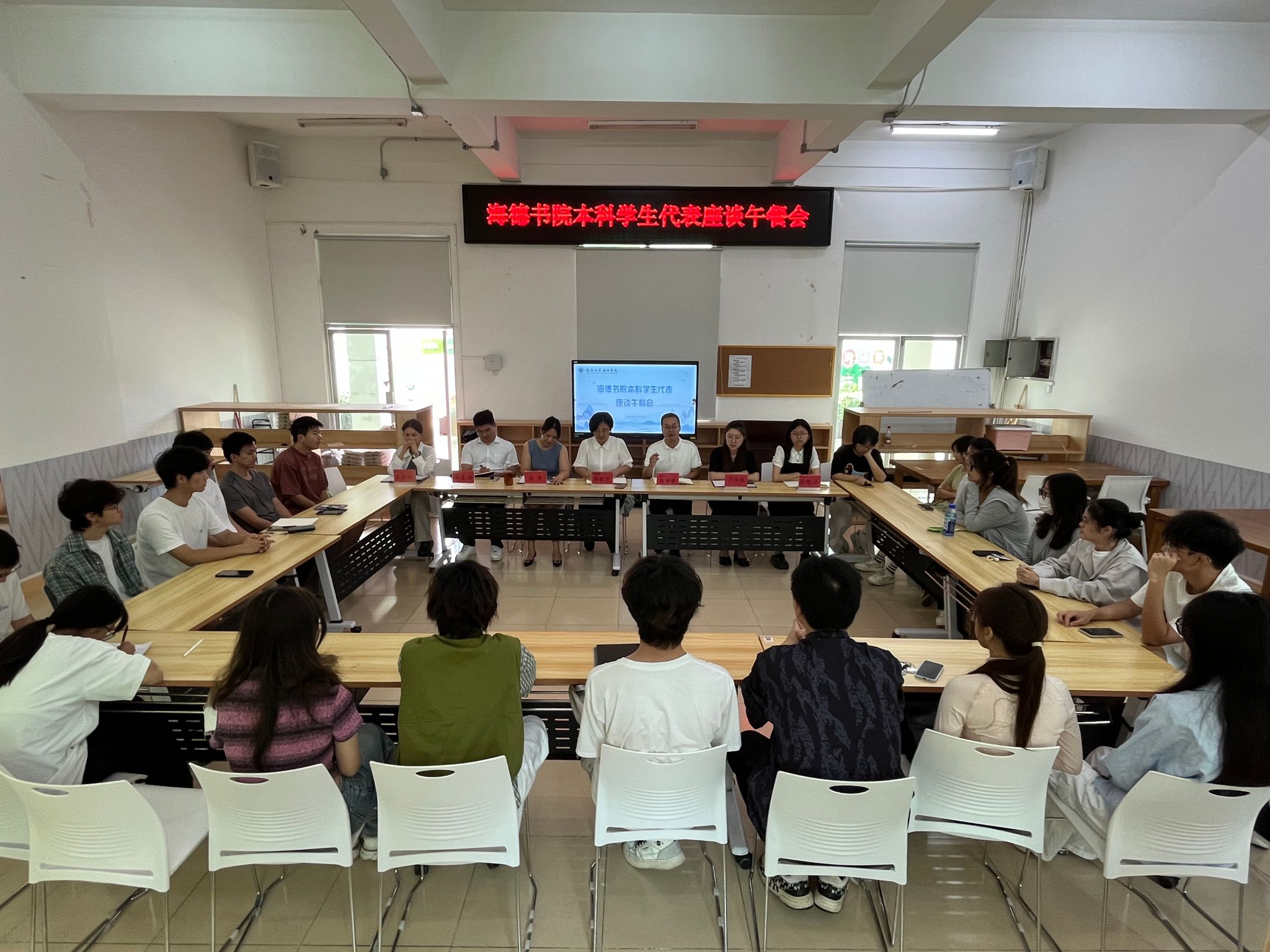韩胜丁书记首先强调了学校本科教育教学审核评估的相关情况,动员大家以饱满的热情和积极的姿态全力迎接本科教育教学审核评估。同时,她很恳切地向同学们征求书院发展的意见,包括活动组织内容、同学们参与的兴趣点、消极情绪的困扰、课程时间与活动时间的协调以及对书院党委的建议等问题,诚邀同学们充分发挥各自的智慧,群策群力,一同为打造温馨、和谐且充满友爱的海德大家庭添砖加瓦,共谋发展。