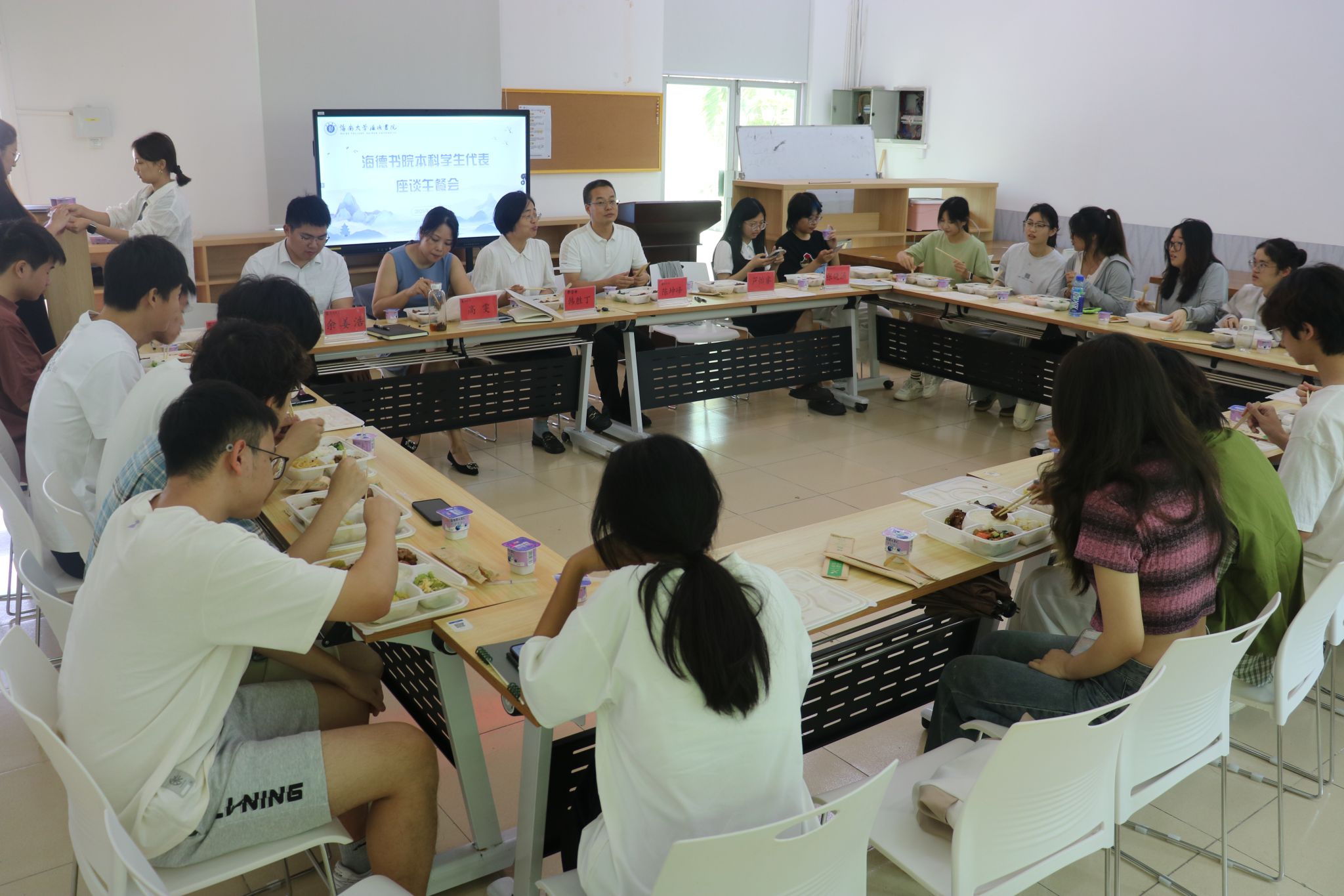 为促进师生交流、助力学生成长,实现“一站式”社区共享、共建,同时将中央八项规定及其实施细则精神走深、走实,2025年4月27日,yl88858永利集团2025年本科学生代表座谈午餐会暨师生交流活动在12号楼二楼会议室拉开帷幕。yl88858永利集团党委书记韩胜丁,辅导员陈坤峰、高雯、芦怡睿、张晓涵、王松锐和余姜浩与书院20余名本科生代表共进午餐,查摆问题,共话发展。