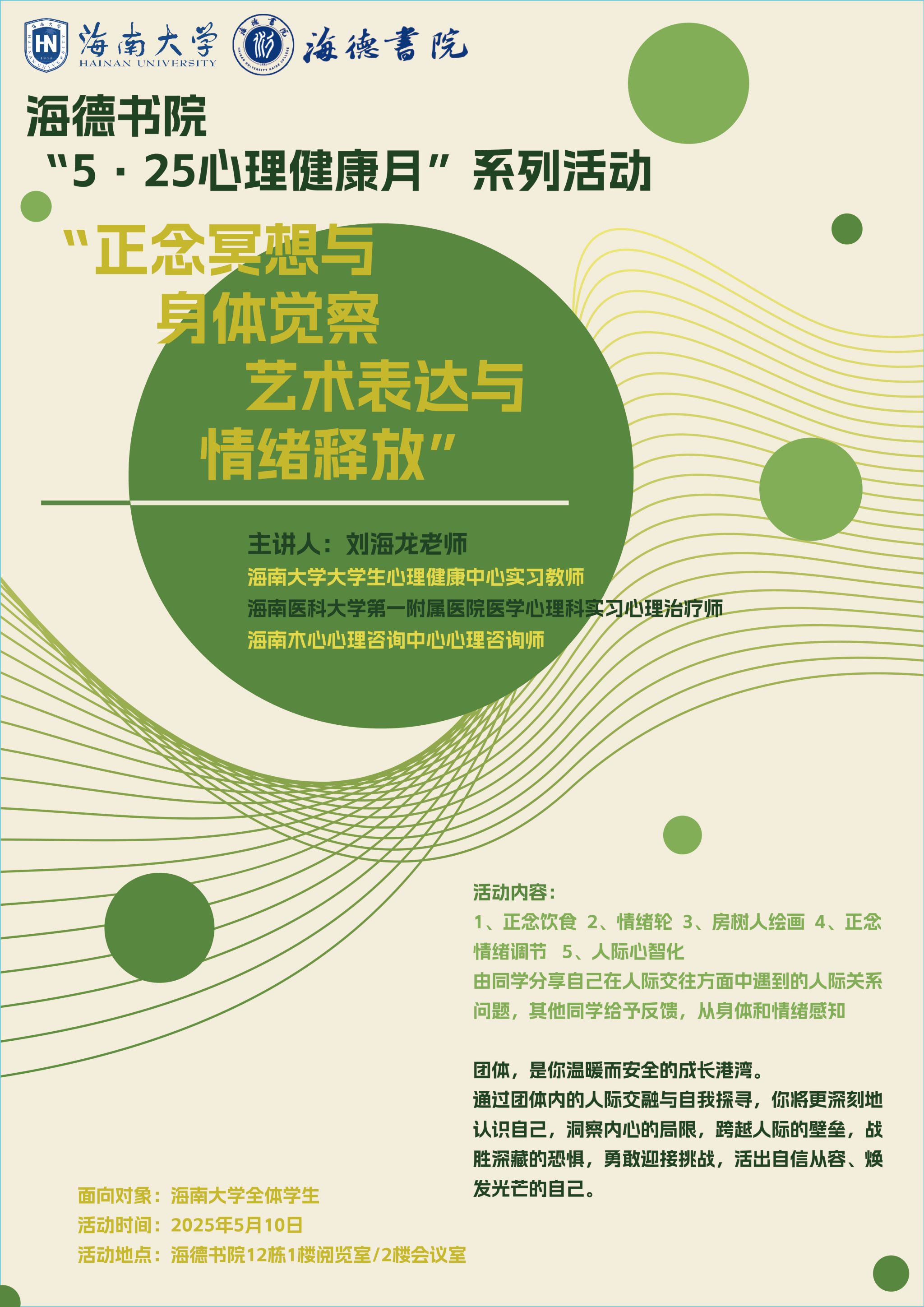 yl88858永利集团“5·25”心理健康月系列活动:“正念冥想与身体觉察,艺术表达与情绪释放”团辅活动即将开始