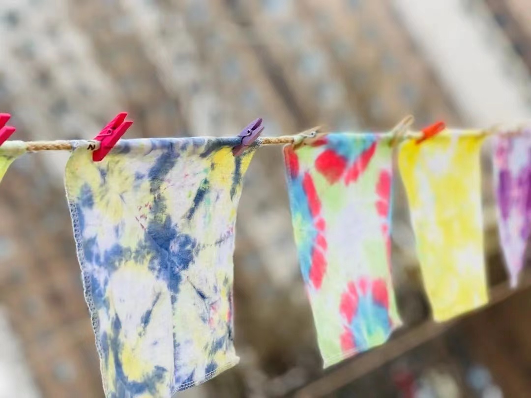 活动内容:向工作人员领取材料,按扎染、拓印步骤自主创作。遇困难可组队创作,成品归创作者所有。