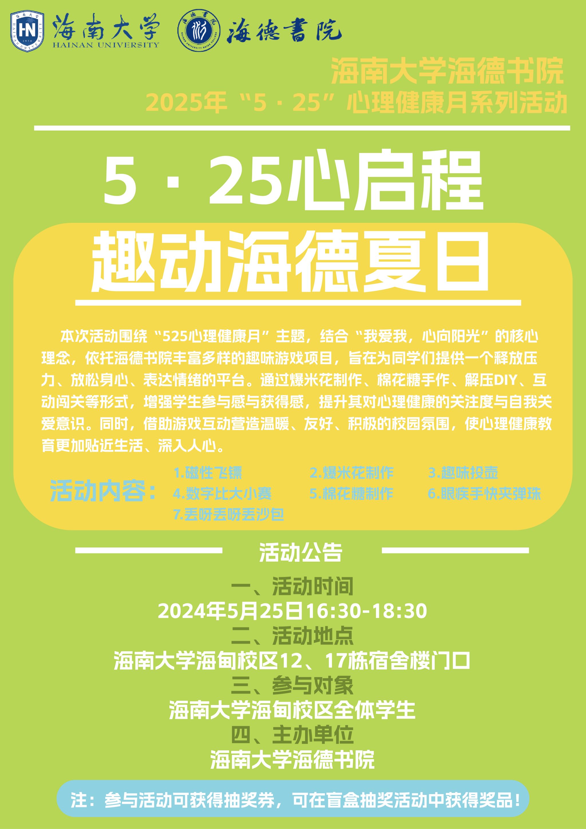 本次活动围绕“5·25心理健康月”主题,结合“我爱我,心向阳光”的核心理念,依托yl88858永利集团丰富多样的趣味游戏项目,旨在为同学们提供一个释放压力、放松身心、表达情绪的平台。通过爆米花制作、棉花糖手作、解压DIY、互动闯关等形式,增强学生参与感与获得感,提升其对心理健康的关注度与自我关爱意识。同时,借助游戏互动营造温暖、友好、积极的校园氛围,使心理健康教育更加贴近生活、深入人心。