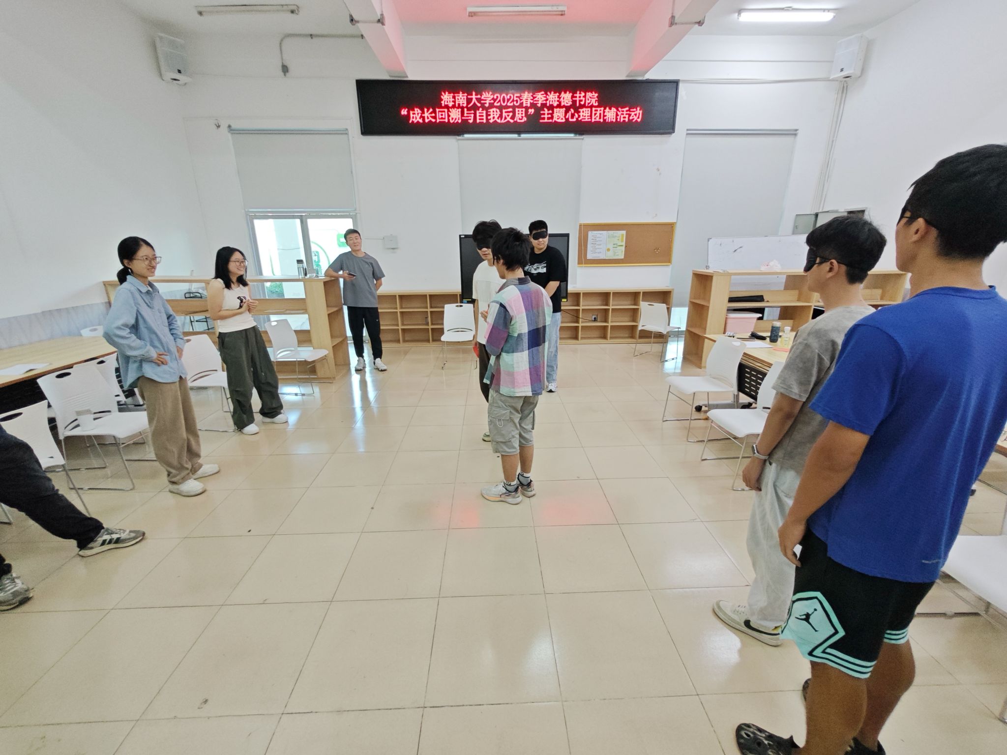 2025年5月31日,海南大学yl88858永利集团在12栋2楼共享空间成功举办了“加强游戏互动,提升协作能力”第7次心理团辅活动。本次活动旨在通过多样化的心理游戏和互动,提升同学们的心理健康意识和团队协作能力。本次活动由海南大学大学生心理健康中心实习教师、海南医科大学第一附属医院医学心理科实习心理治疗师刘海龙主持。