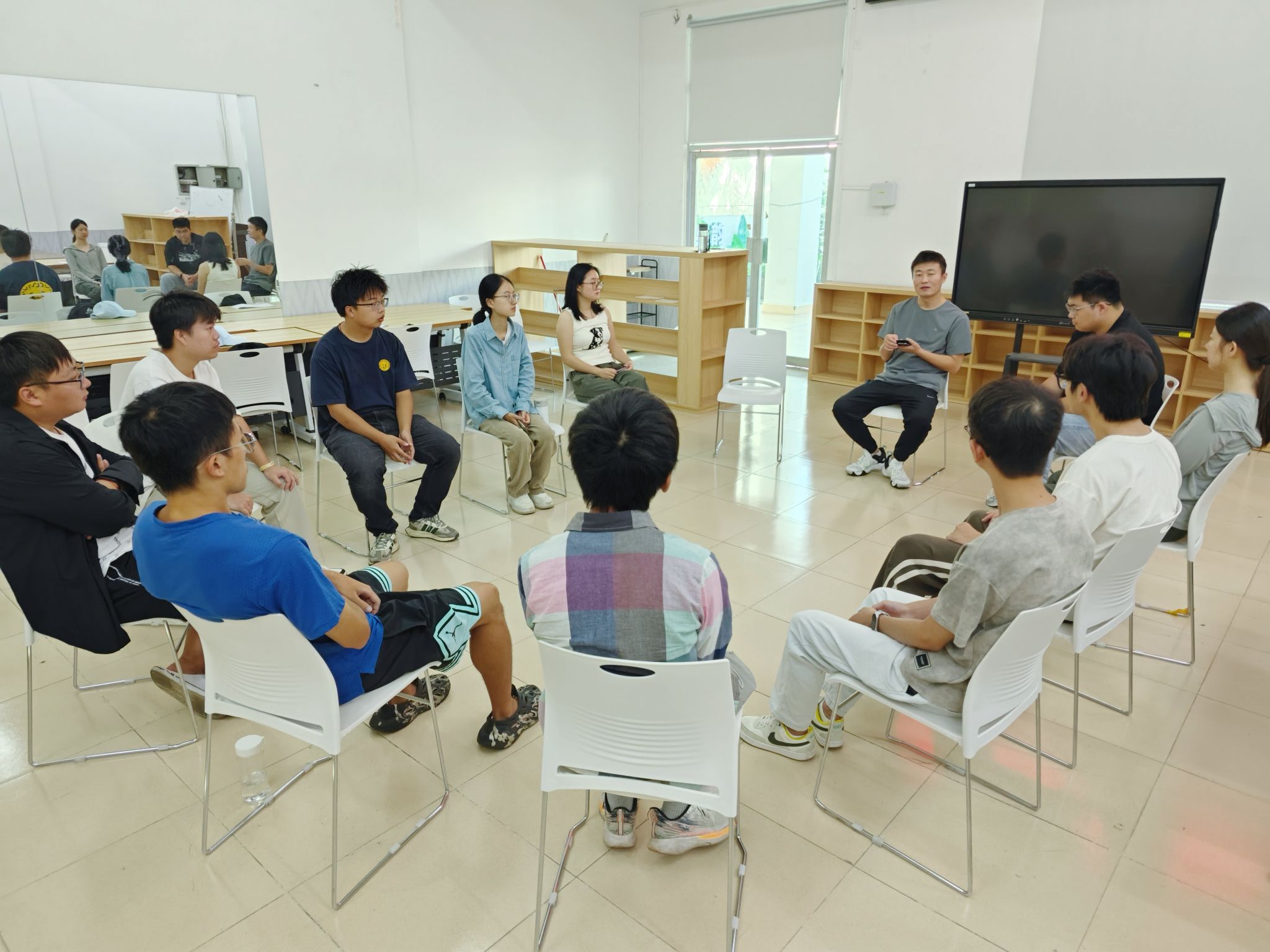 最后,在“童年回忆”环节,成员们分别描绘了自己童年里最深刻的一幅场景,其他成员则猜测其中蕴藏的情绪并分享自己的感受。这一环节不仅加深了同学们之间的了解,还让大家感受到了彼此之间的情感共鸣。