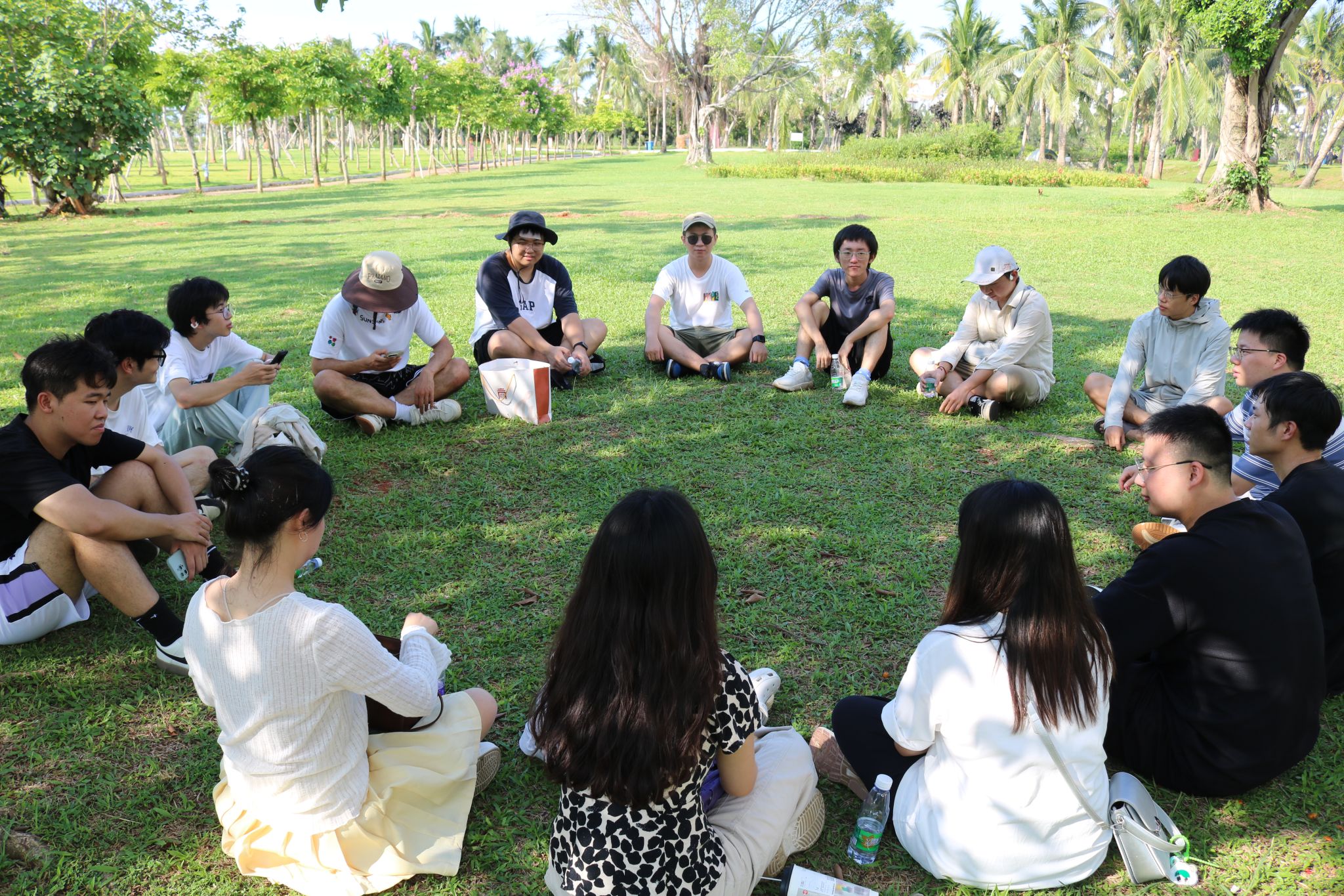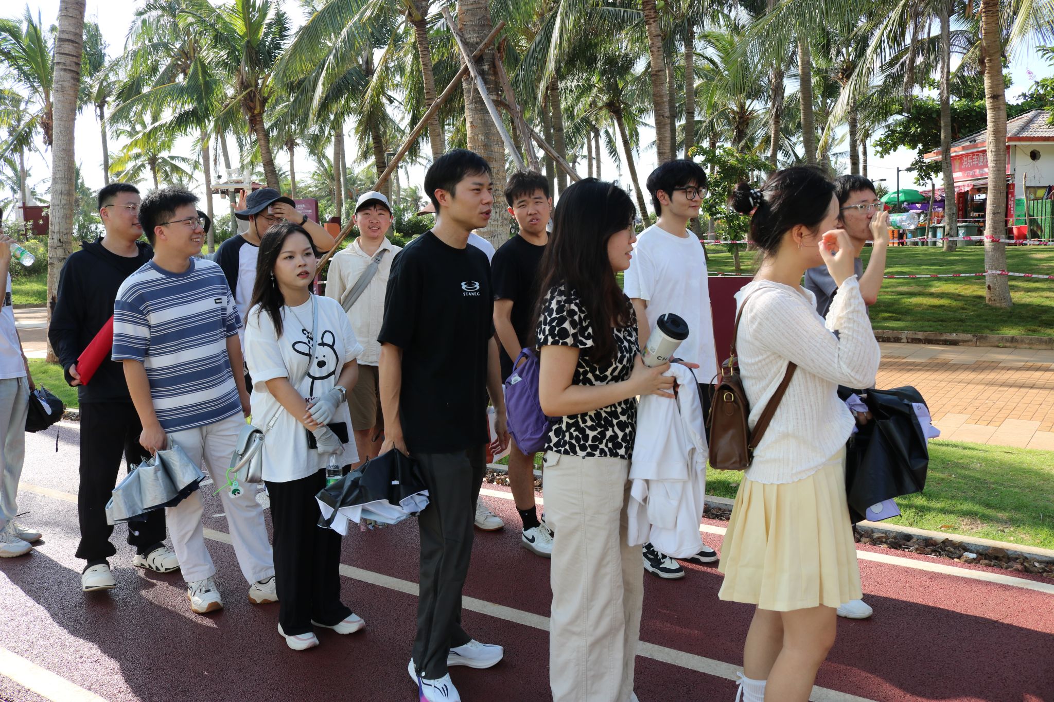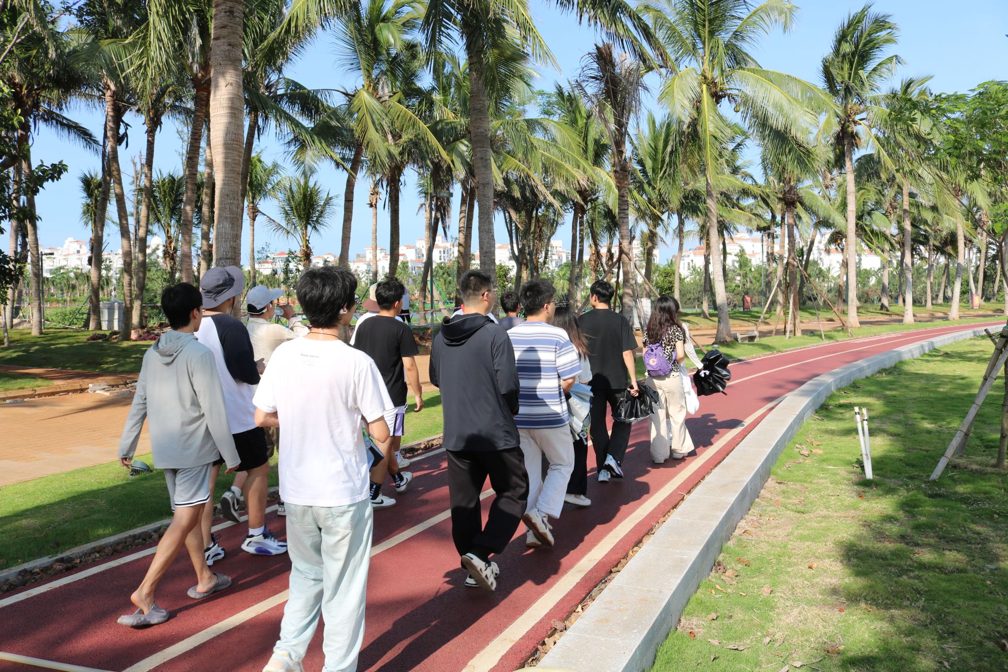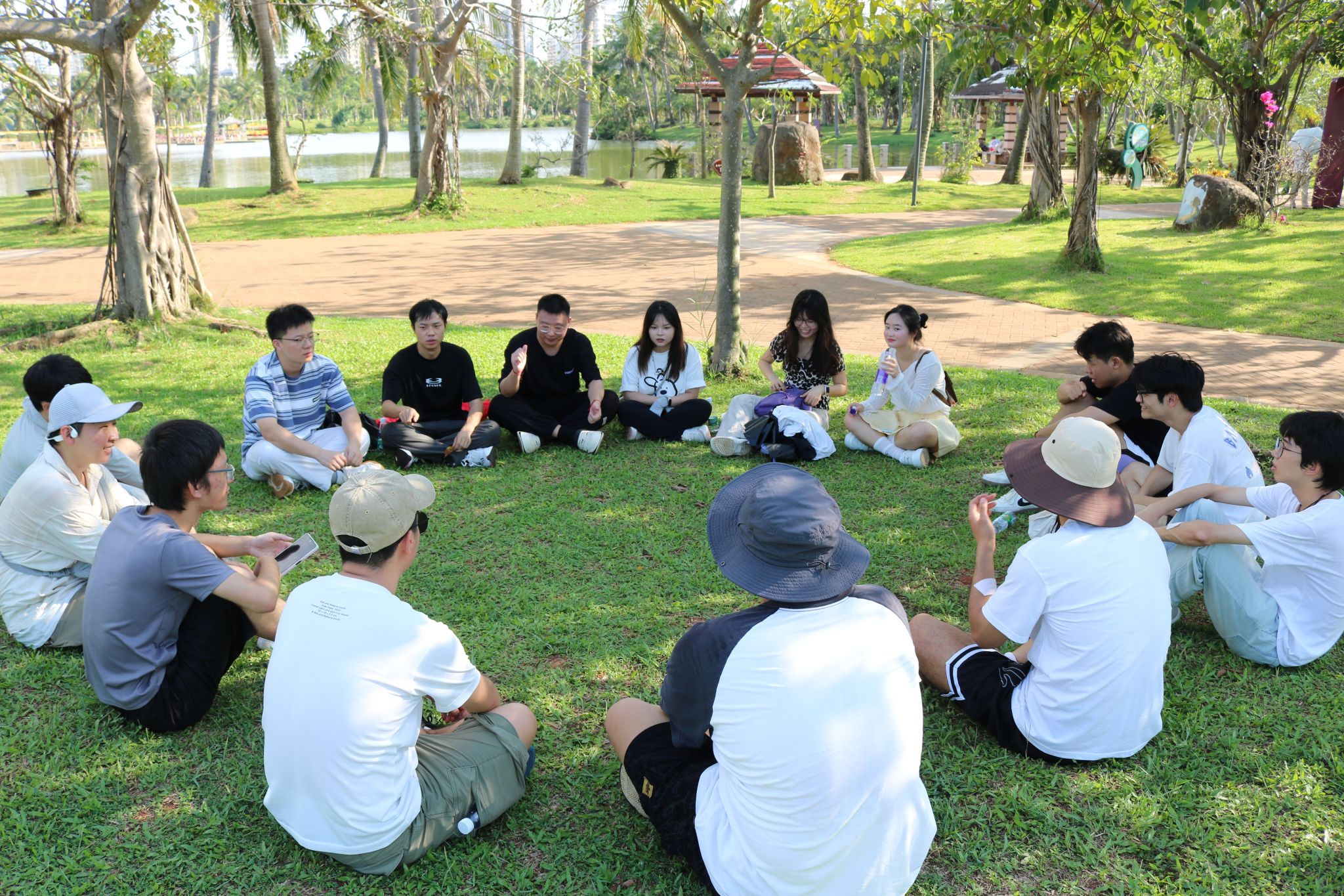 漫步公园之中,师生们还深入体验了市民的休闲生活,观察并融入本地的生活方式。他们或围坐交流,分享对海口的认知与情感;或自由游览,用镜头捕捉美好的瞬间。