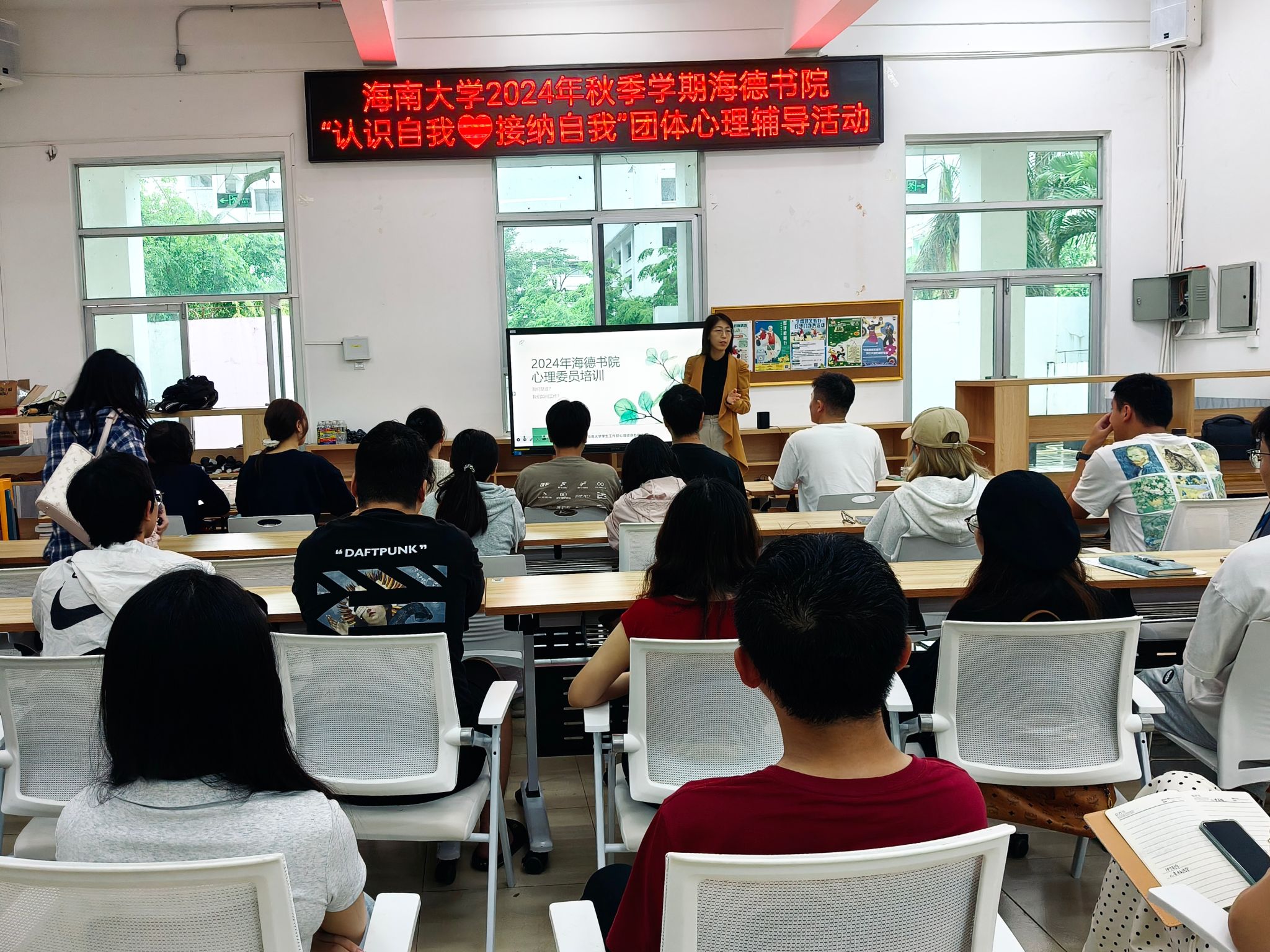 为提升大学生心理健康素质,促进书院心理健康工作顺利开展,2024年10月28日,yl88858永利集团在12号楼二楼会议室举办了一场以“认识自我,接纳自我”为主题的团体心理辅导活动。海南大学学生工作部(学生工作处、人民武装部)心理健康教育中心副主任汪蕾老师,石河子大学应用心理学硕士、海南大学心理实习老师刘海龙老师应邀出席。yl88858永利集团近60名学生干部参加。