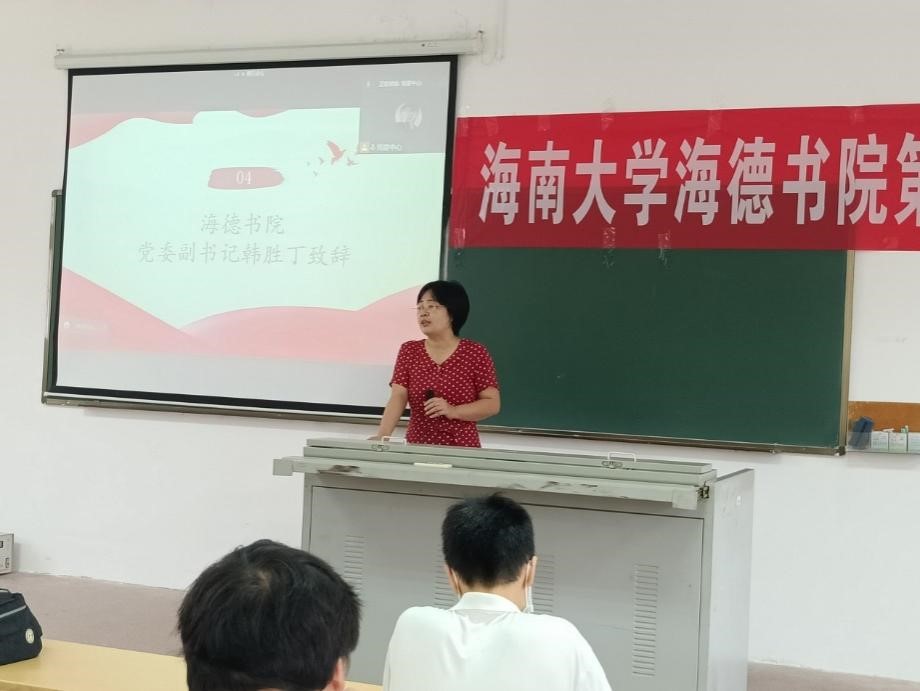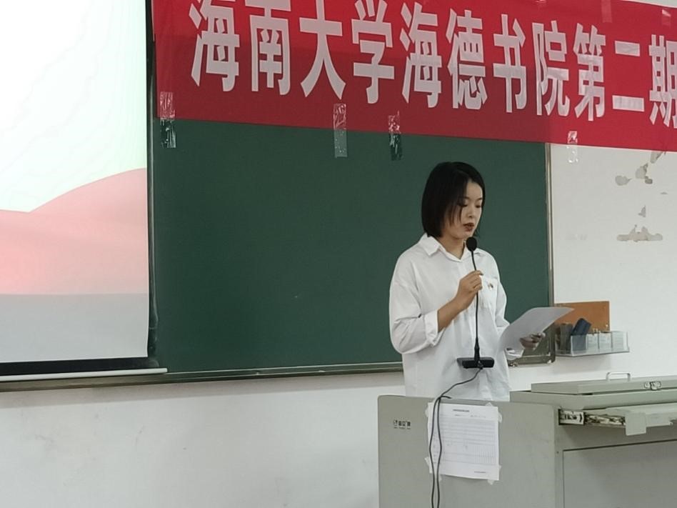 首先是往期学员代表程伟讲话。程伟同志通过回忆自己的入党初心,表达她对党和国家忠心,坚决表示要以实际行动来报效党和国家,并号召大家要充分利用好时间,努力学习理论知识,不断提高自身能力和自身素质,加强专业知识学习,不断适应海南自贸港建设发展需求。她强调党员应该从“思”“行”“能”三方面严于律己,未来扎根海南发展,利用所学知识积极投身海南自贸港建设。
