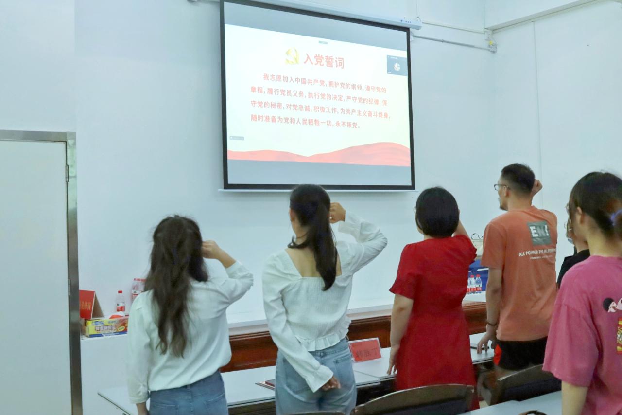 会议开始,主持人带领着大家庄重的唱响了国歌。书院学生党建工作中心的李腾腾同志带领大家一起举起右手并握拳开始重温入党誓词。
