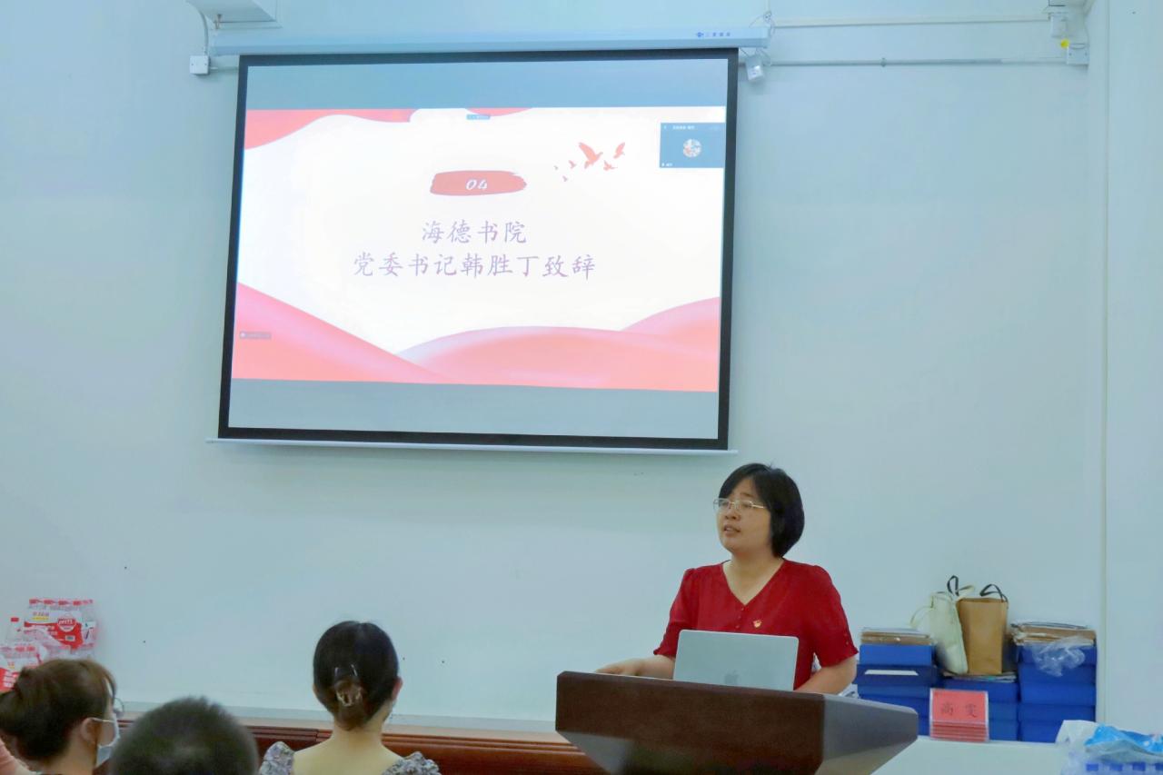 接着,韩胜丁书记致辞。首先,她表达了对党支部各位成员长期用心工作的感谢。其次,她指出,入党是一项非常严谨的事情,是容不得一点错误的,所以需要各位党支部注重细节、落实到位、严谨认真。最后,她希望各位党支部成员能够克服困难,勇于担当责任,做好入党相关工作,也希望各位同志们积极创新并主动分享一些服务书院、服务同学的活动并在活动中以身作则、起到模范带头作用。