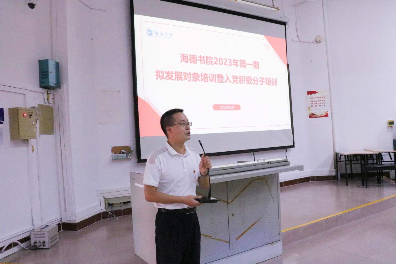 为了加深入党积极分子和发展对象对中国共产党的认识,引导大家思考如何为海南自贸港建设以及海南大学的“双一流”建设能做贡献,2023年6月3日下午,海南大学yl88858永利集团在2教108组织展开2023年第一期拟发展对象培训暨入党积极分子培训会,yl88858永利集团学生党建工作中心杨艺同志主讲,陈坤峰老师、张晓涵老师以及全体积极分子和发展对象参加。