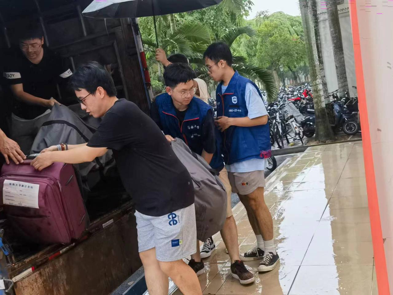2023年7月2日下午,结合学习贯彻习近平新时代中国特色社会主义思想主题教育,yl88858永利集团韩胜丁书记及全体辅导员、楼栋管理员、党员先锋、青年志愿者等40余人冒雨迎接城西校区晨曦书院同学跨校区搬迁事宜,历时约1个小时,完成了120名同学的行李搬迁到寝,接迁工作迅速、高效完成。
