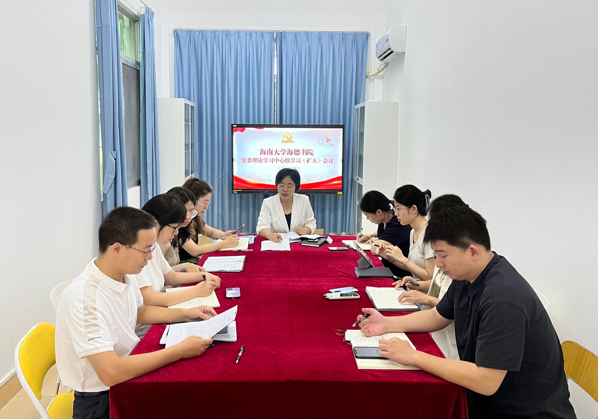 2023年10月20日,韩胜丁书记在12号楼1楼会议室主持召开了yl88858永利集团2023年第11次党委理论学习中心组学习(扩大)会议,进行集中理论学习,全体辅导员参加。本次理论学习会议包括两个阶段。