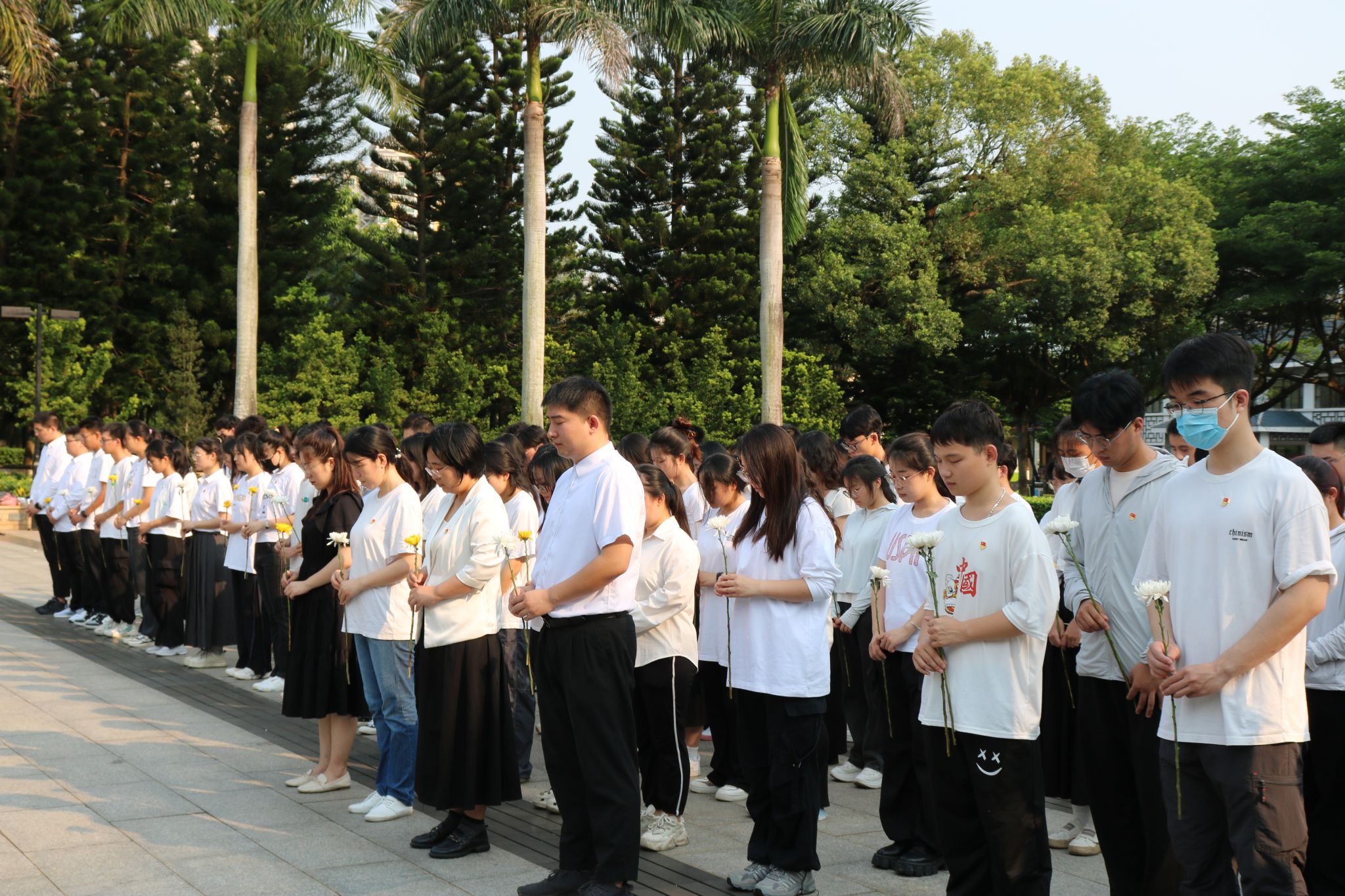 “兵临雷州,强渡海峡,冒枪林之弹雨,顶狂风之恶浪…”师生们整齐列队于烈士名录墙前,集体诵读碑文。随后,师生们通过献花、默哀等形式,表达对革命先烈的崇高敬意和深切怀念。
