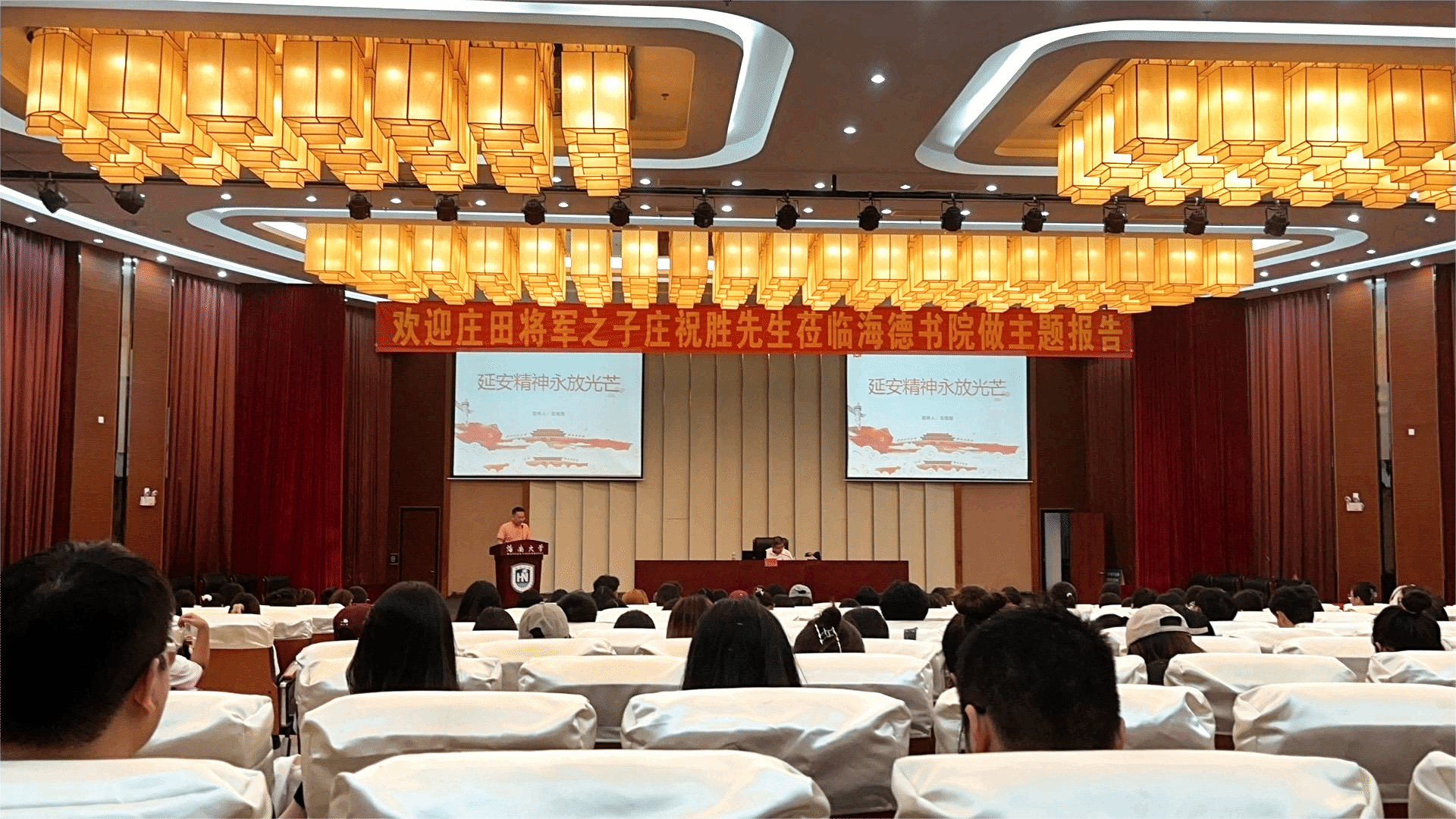4月9日下午,开国中将庄田将军之子庄祝胜先生应邀为海南大学yl88858永利集团师生作题为《延安精神永放光芒》的主题报告。全院320余名师生现场聆听报告。yl88858永利集团党委书记韩胜丁出席报告会。党委副书记陈丹主持报告会。