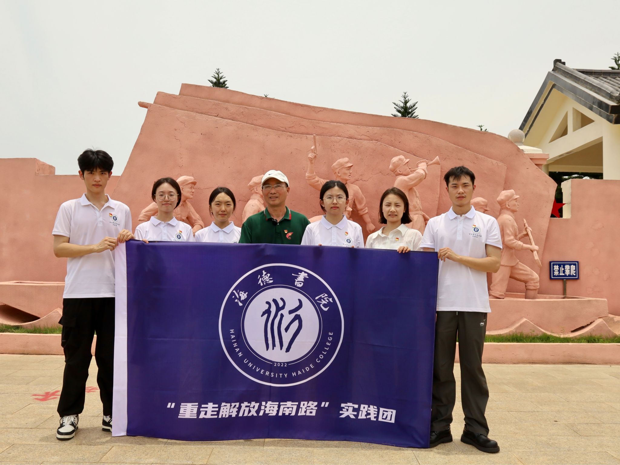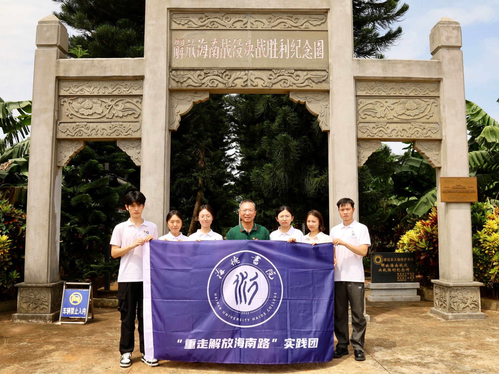 何凡老师与实践团在美亭解放海南战役决战胜利纪念园合影留念