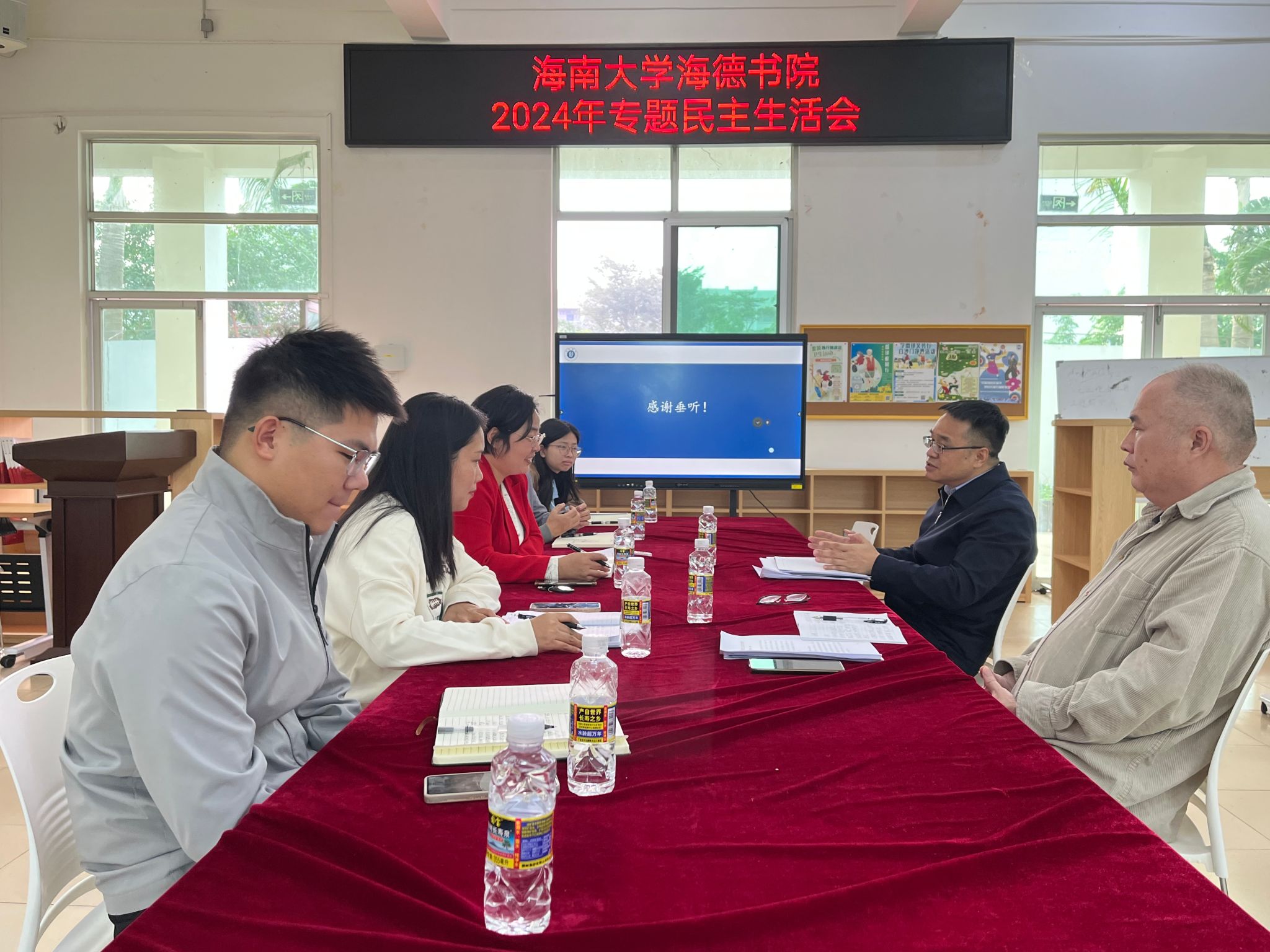 2025年1月9日下午,海南大学yl88858永利集团12栋2楼会议室召开2024年度党员领导干部民主生活会。校党委常委、副校长刘谦,学工部邱志春到会指导。会议由yl88858永利集团党委书记韩胜丁主持,党委委员高雯及其他辅导员参加会议。