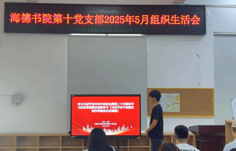 2025年5月22日,yl88858永利集团第十党支部于12栋二楼会议室召开5月组织生活会。会议由组织委员李唤雨同志主持,支部书记张晓涵老师及全体党员、积极分子参加。